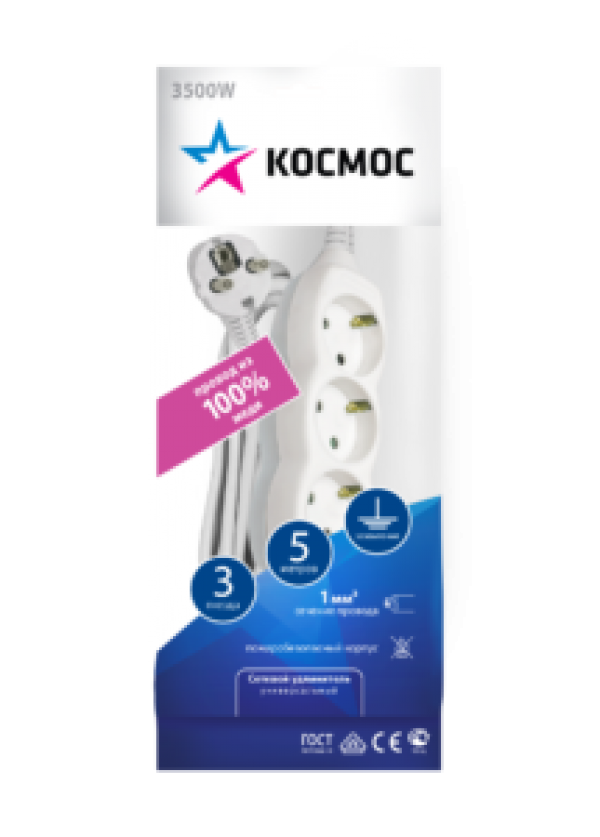 Сетевой фильтр Космос YKsm5m-3g-Z-V K 5м белый 3 гнезда 3х1 . интересное: