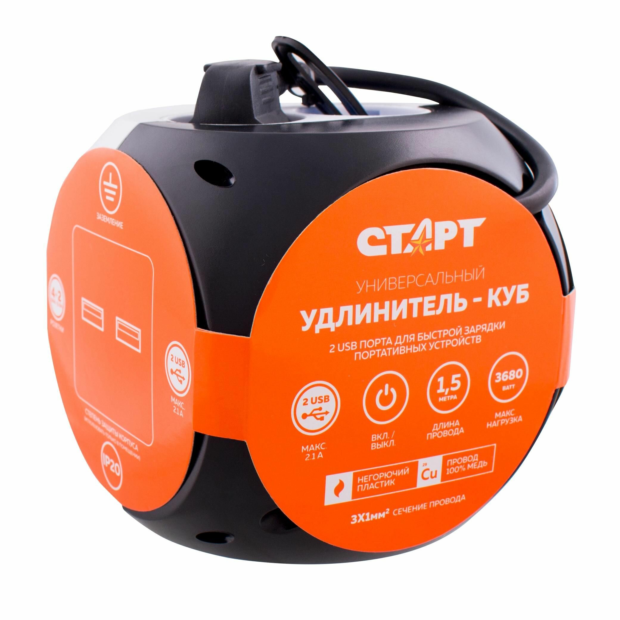 Удлинитель Старт 4x1-ZDV 2USB CUBE интересное: