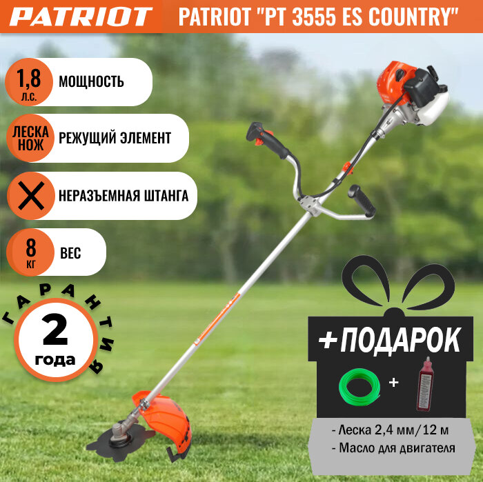 Триммер бензиновый(Мотокоса) Patriot PT 3555 ES COUNTRY + леска + масло для двигателя + щиток