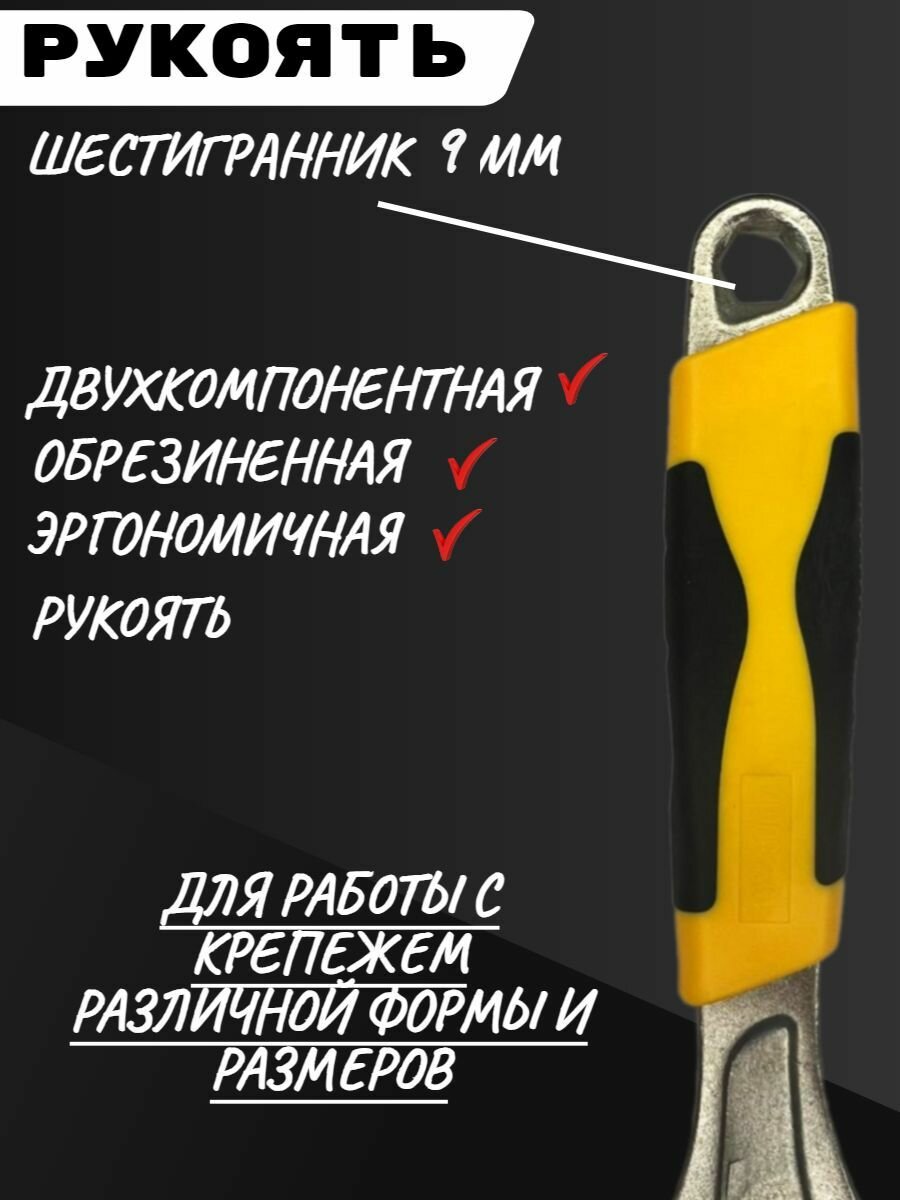 Ключ сантехнический 6 в 1 вставка 21-23-27 мм, корпус 28 и 52 мм, 250 мм