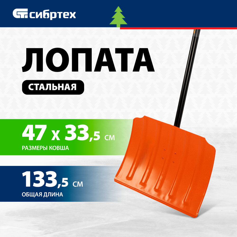 Лопата Сибртех для уборки снега стальная 470х335х1335 мм стальной черенок 61656