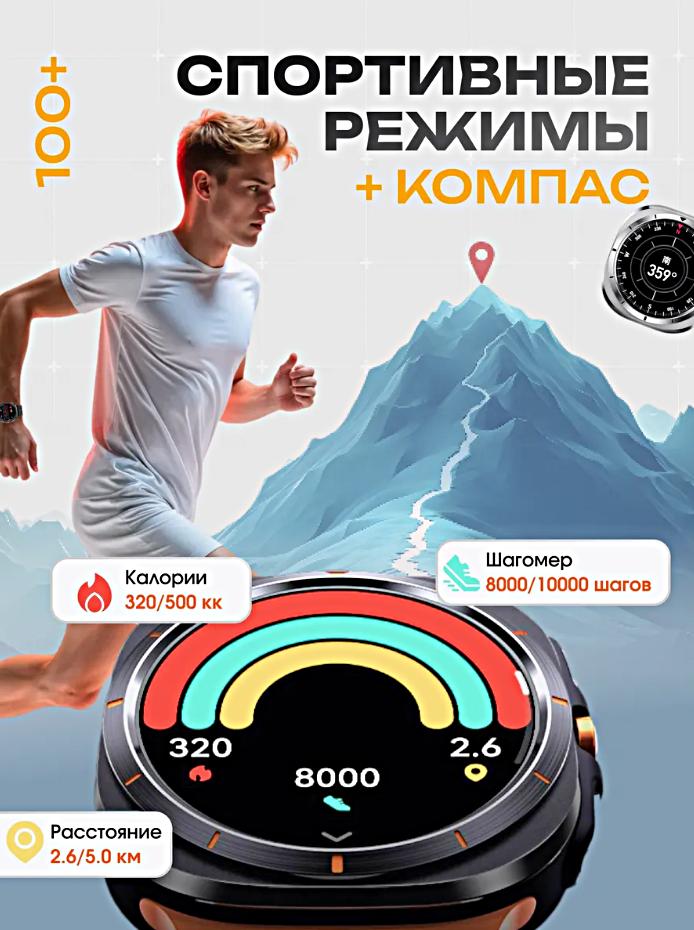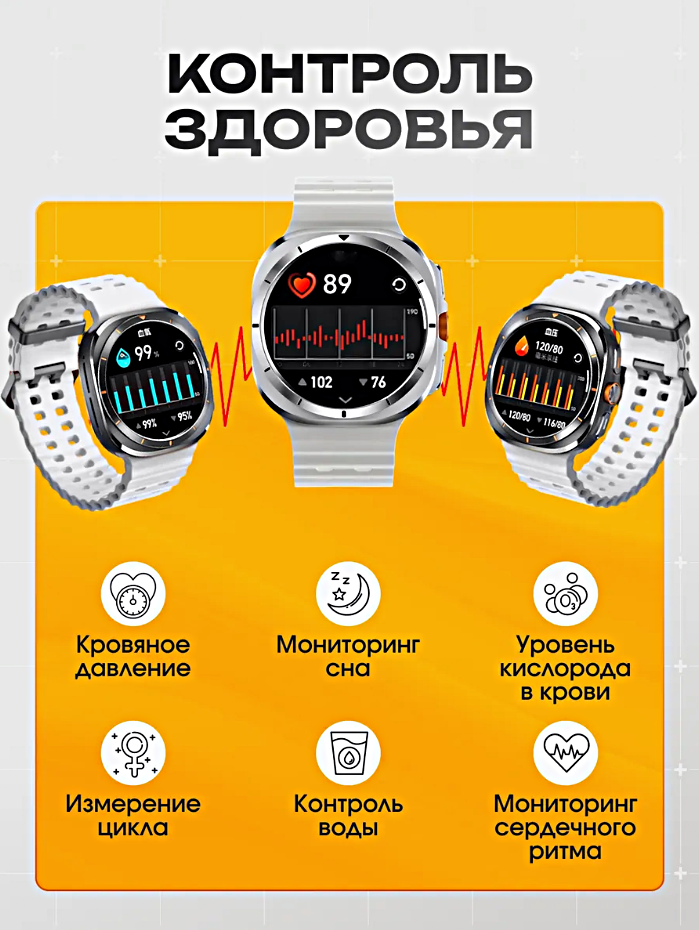 Умные часы Smart Watch Ultra Gold Edition, Bluetooth, IP68, iOS, Android, Голосовой помощник, 2 ремешка, WinStreak