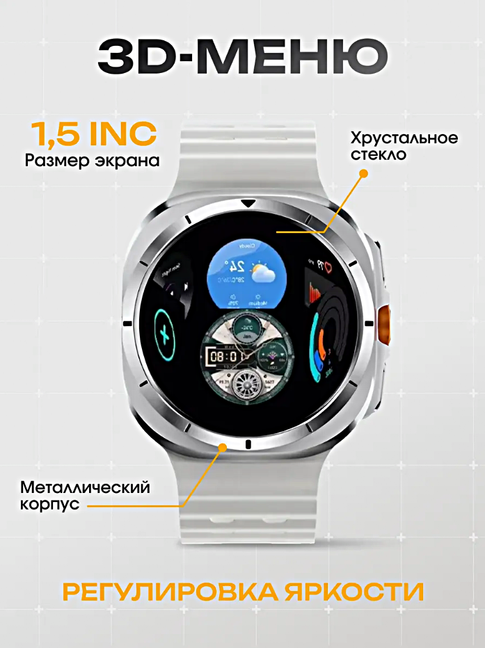 Смарт часы G15 PRO Умные часы PREMIUM Smart Watch AMOLED 4G/5G, Wi-Fi, iOS, Android, Галерея, Браузер, Камера, Звонки, Cеребристый