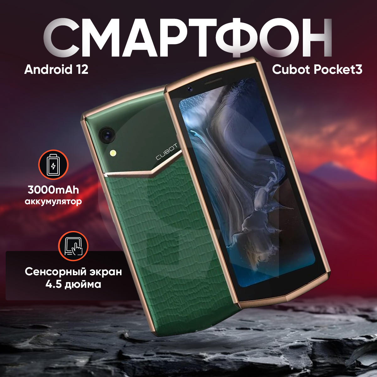 Смартфон CUBOT Pocket 3 4/64 Gb, 4.5", Green