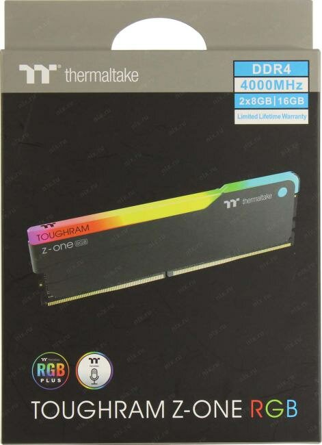 16GB Thermaltake DDR4 4000 DIMM TOUGHRAM Z-ONE RGB Black Gaming Memory R019D408GX2-4000C19A R019D408GX2-4000C19A Non-ECC, CL19, 1.35V, Heat Shield, XMP 2.0, Kit (2x8GB), RTL (529228)