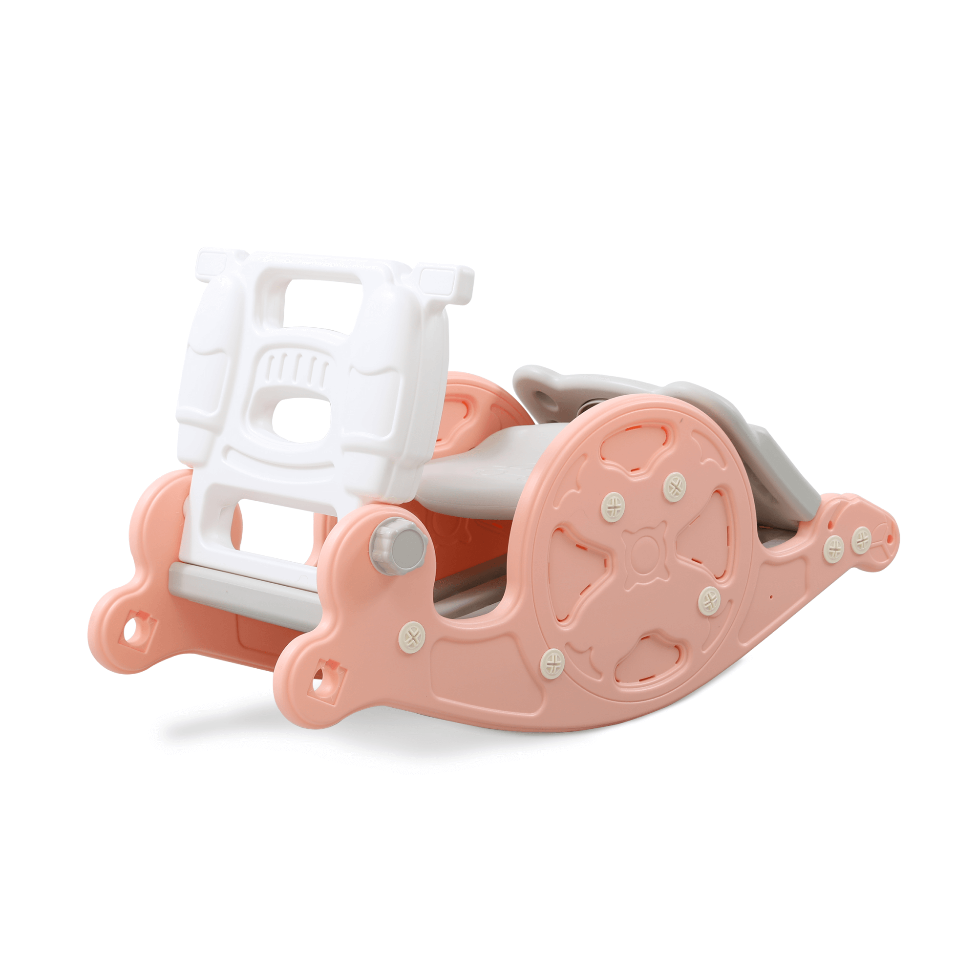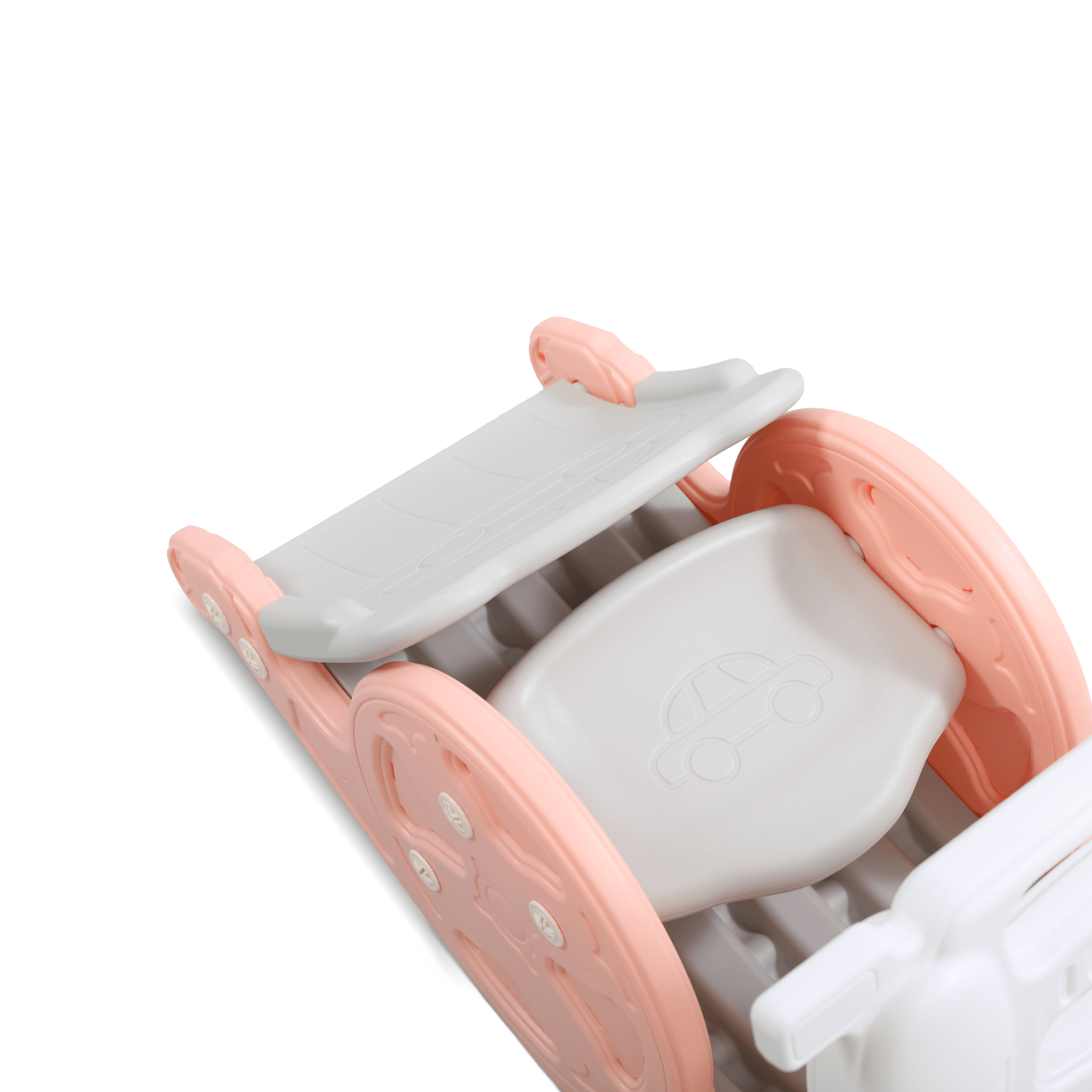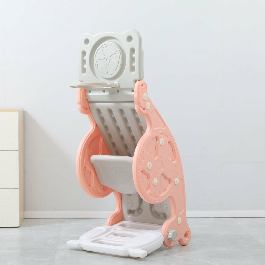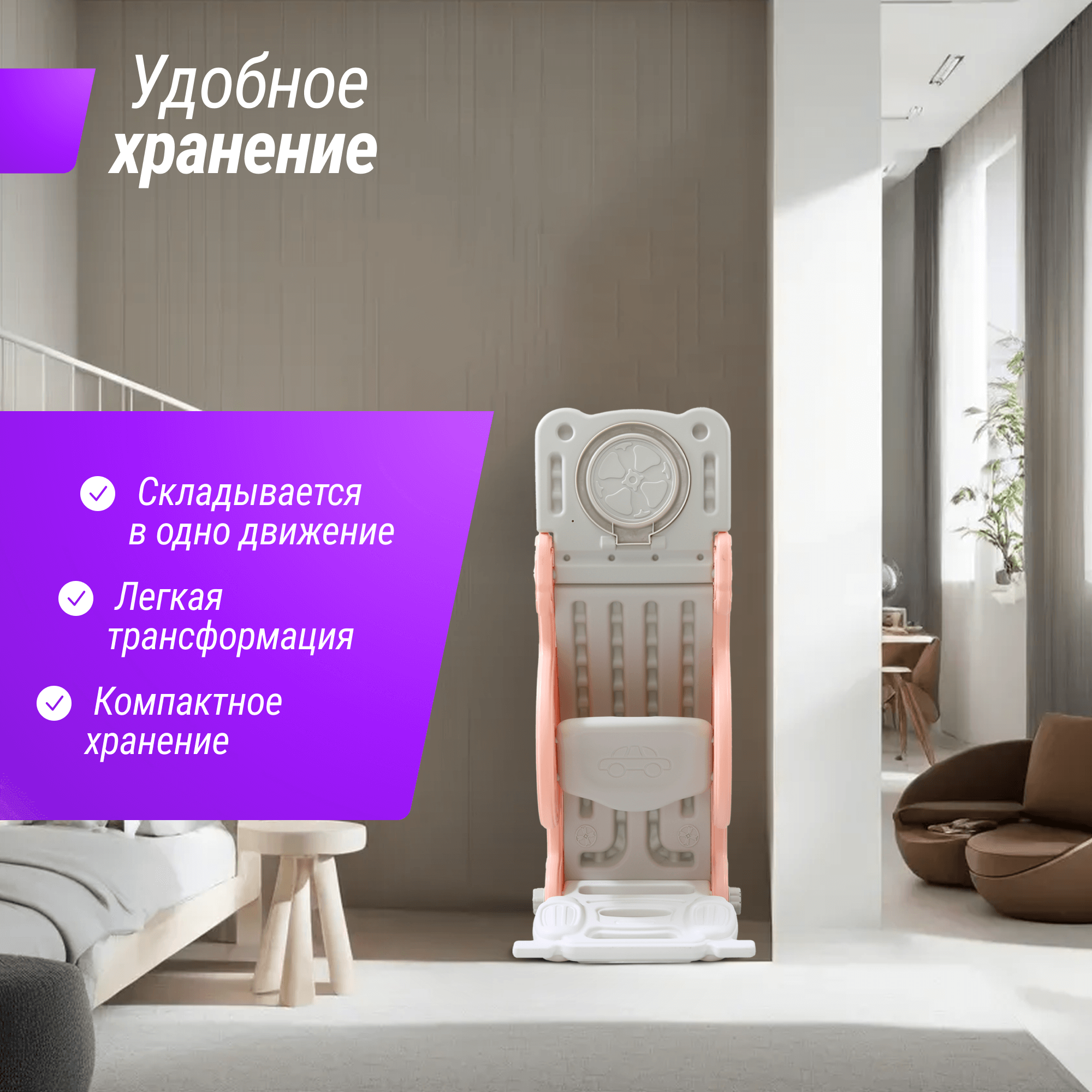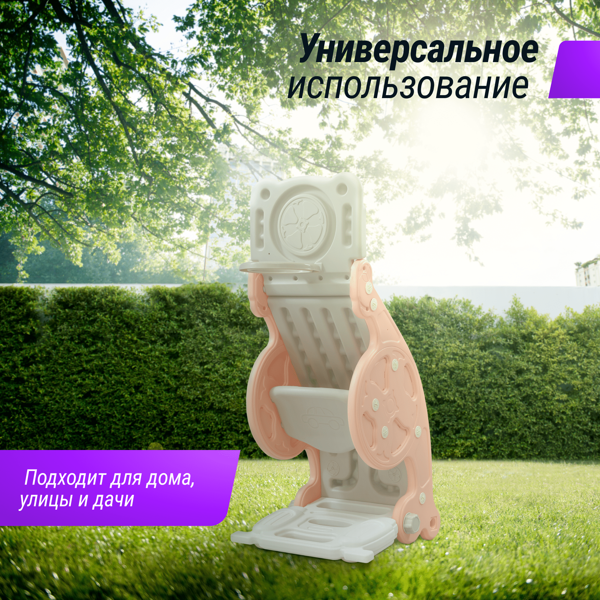 Горка-трансформер UNIX Kids Rose, со спуском 95 см, из пластика, горка, качалка-балансир, баскетбольная стойка, 100х42х45 см, розовый