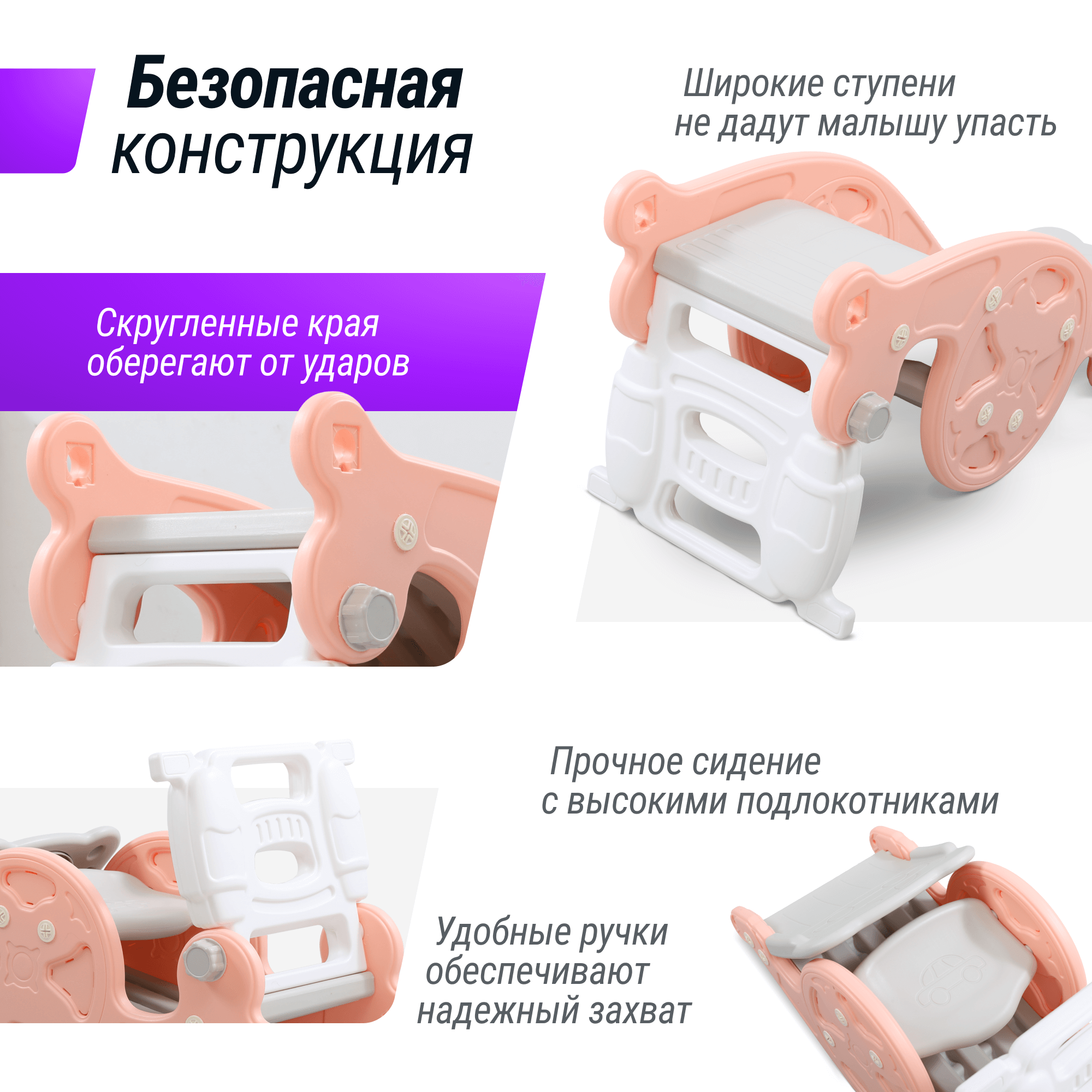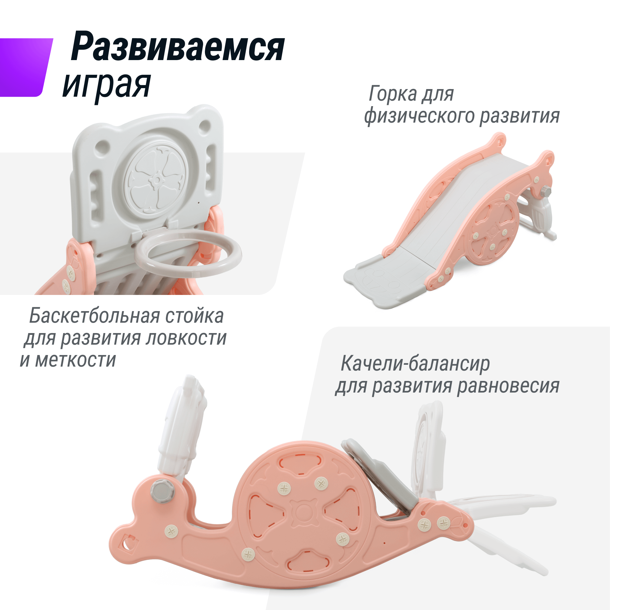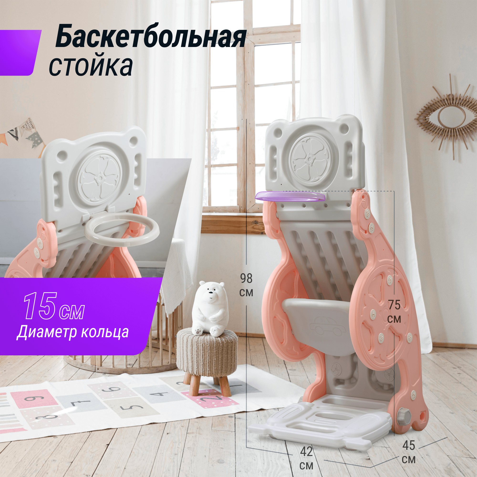 Купить Горка-трансформер UNIX Kids Rose, со спуском 95 см, качалка-балансир, баскетбольная стойка, 100х42х45 см