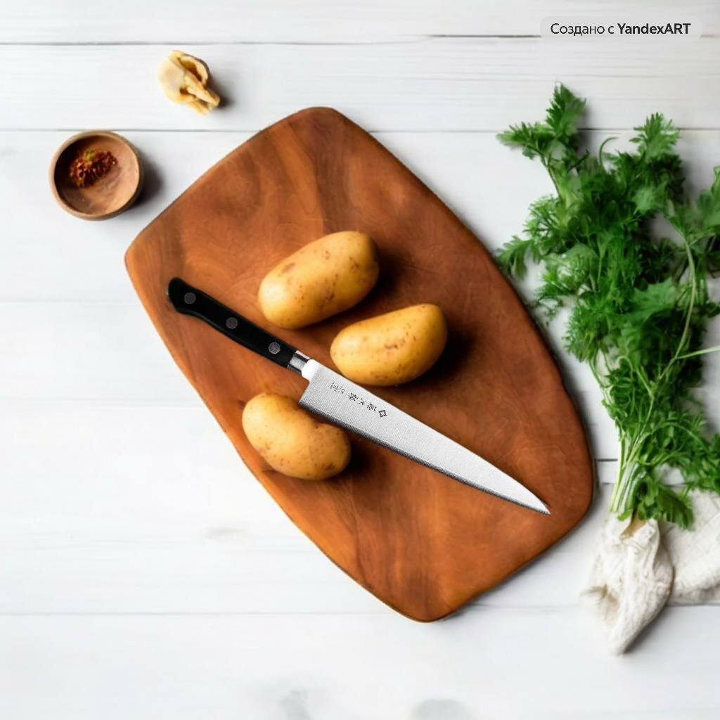 Нож Кухонный Универсальный TOJIRO (F-798), длина лезвия 18,0 см, сталь VG10, 3 слоя, рукоять дерево, Япония интересное: