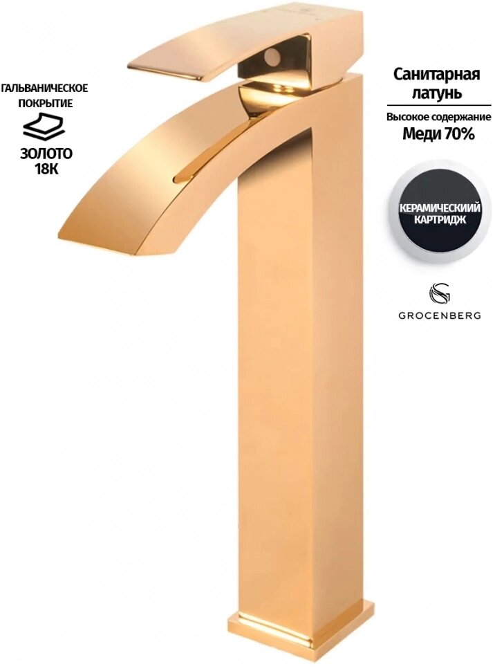 Смеситель для раковины высокий Grocenberg GB3007GO Золото
