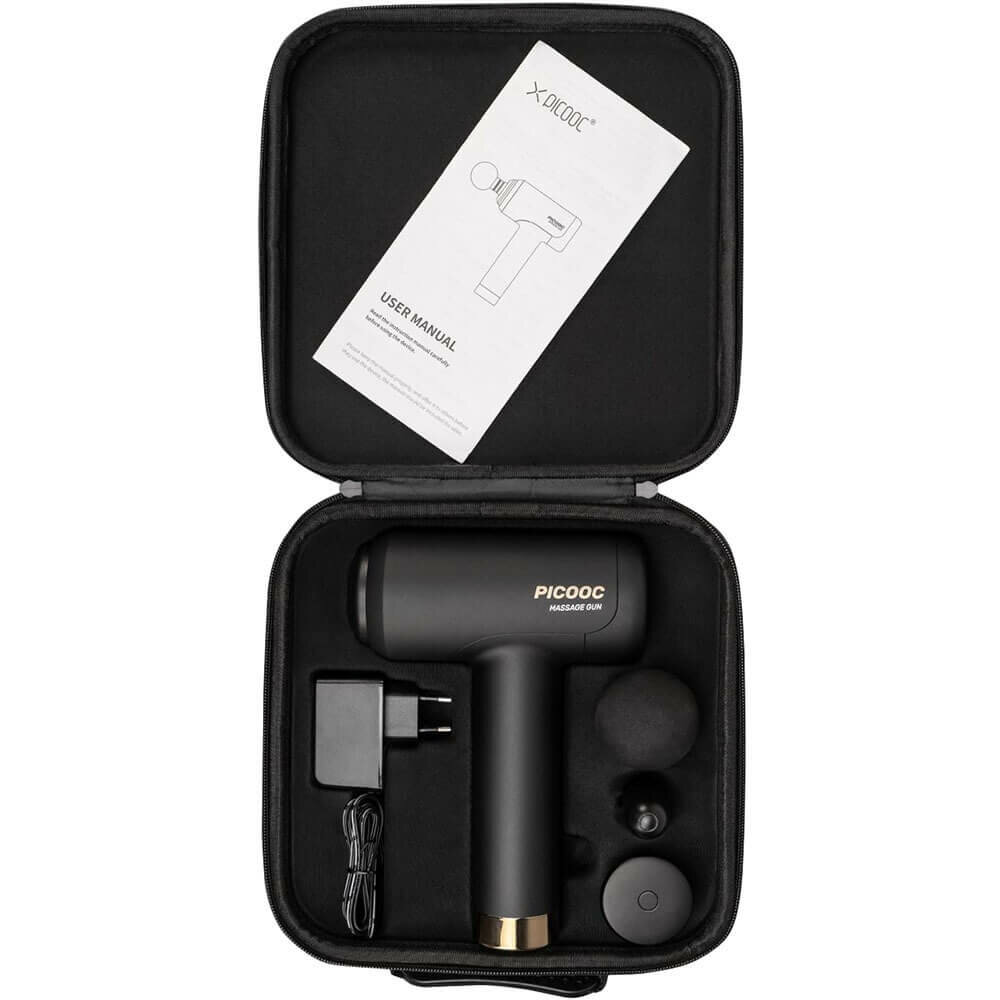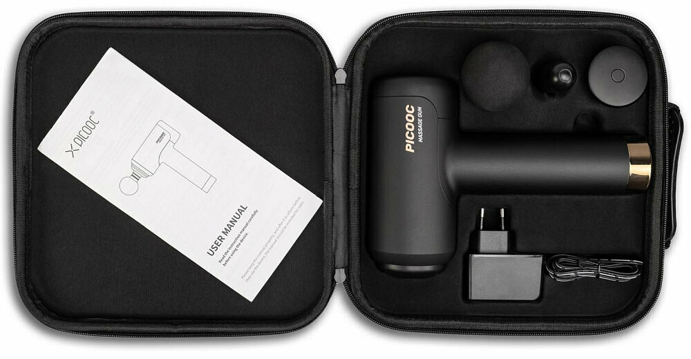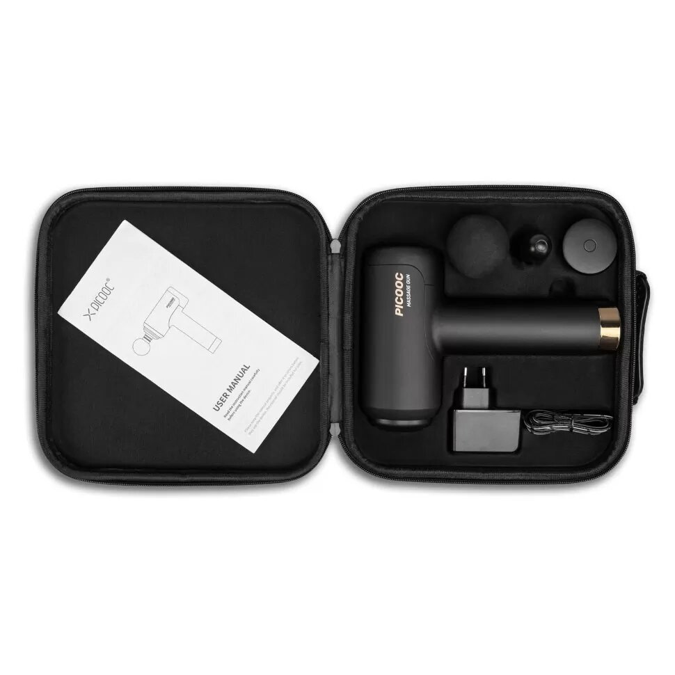 | Подробная комплектация | Перкуссионный массажер Picooc P1 Classic, 3 сменные насадки: круглая, плоская и пулевидная, Адаптер питания, Чехол-кейс, Документация |