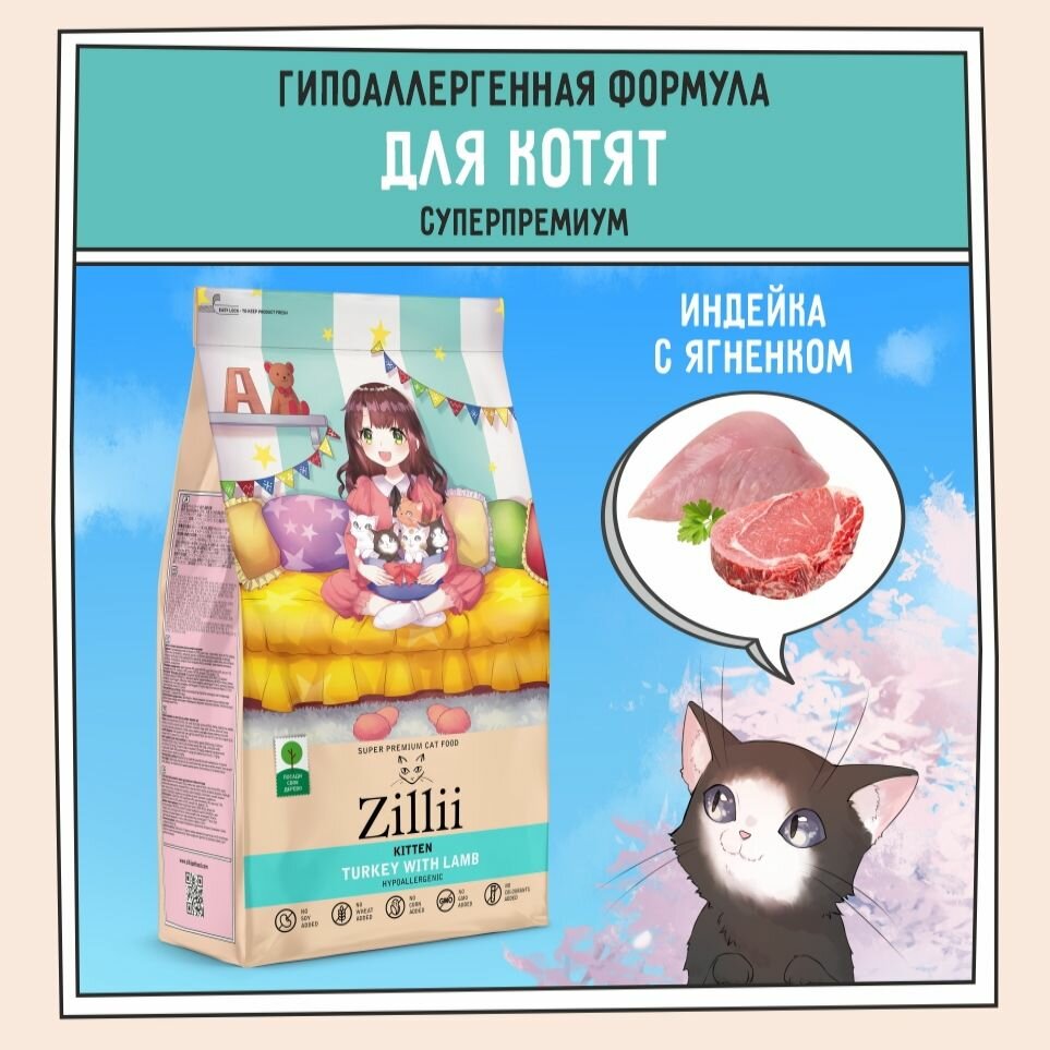Корм для котят сухой 2 кг, гипоаллергенный ZILLII (Зилли) Kitten, Индейка с Ягнёнком