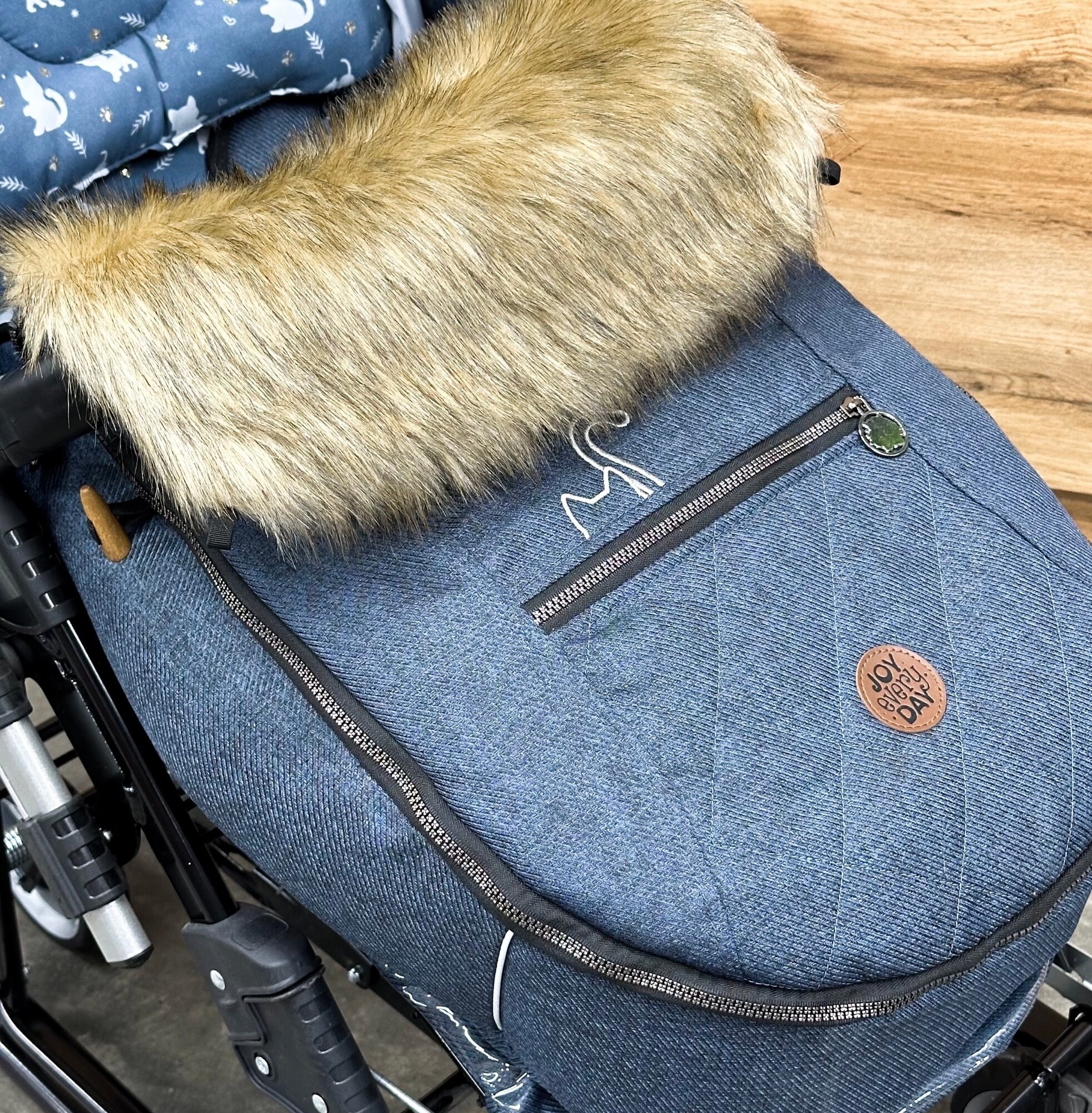 СохранитьСанки-коляска Nika Joy every day с котятами для детей от 6 месяцев, синий с котятами регулируемая и перекидная ручка, сумка, муфта. интересное: