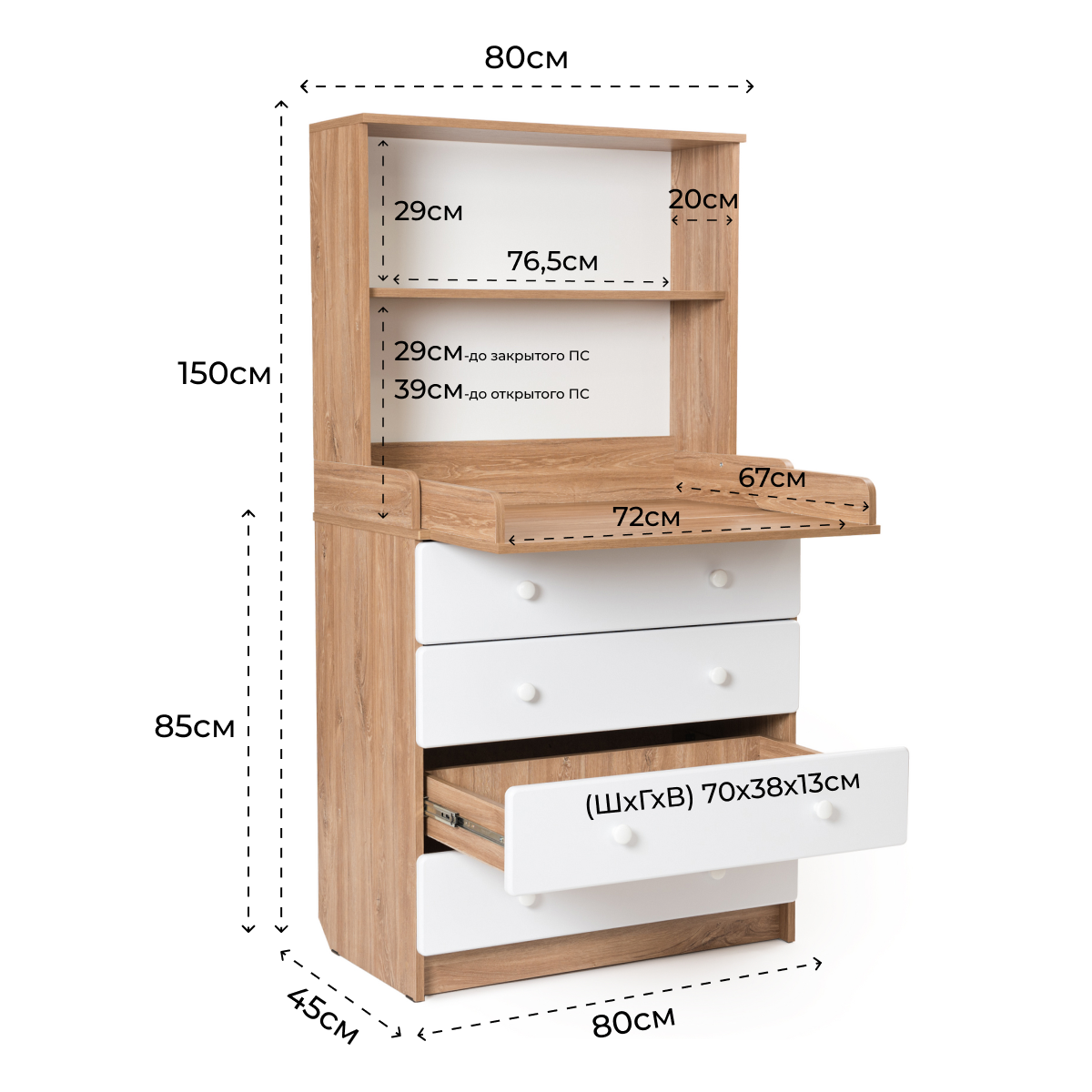 | Ширина пеленальной поверхности | 67 см |