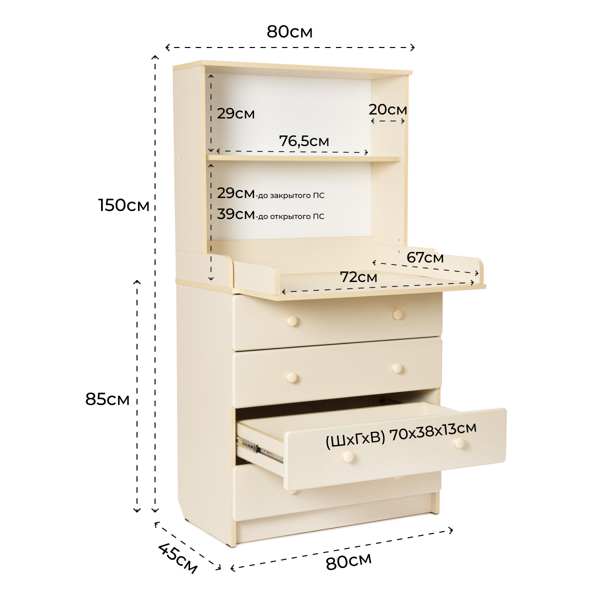 СохранитьПеленальный комод BEBIZARO BRISTOL VANILLA (ШхГхВ) 80х45х150 см интересное: