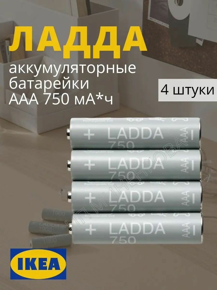 Аккумуляторная батарейка IKEA LADDA ладда HR03 AAA 1.2 В 750 мА ч , в упаковке: 4 шт. интересное: