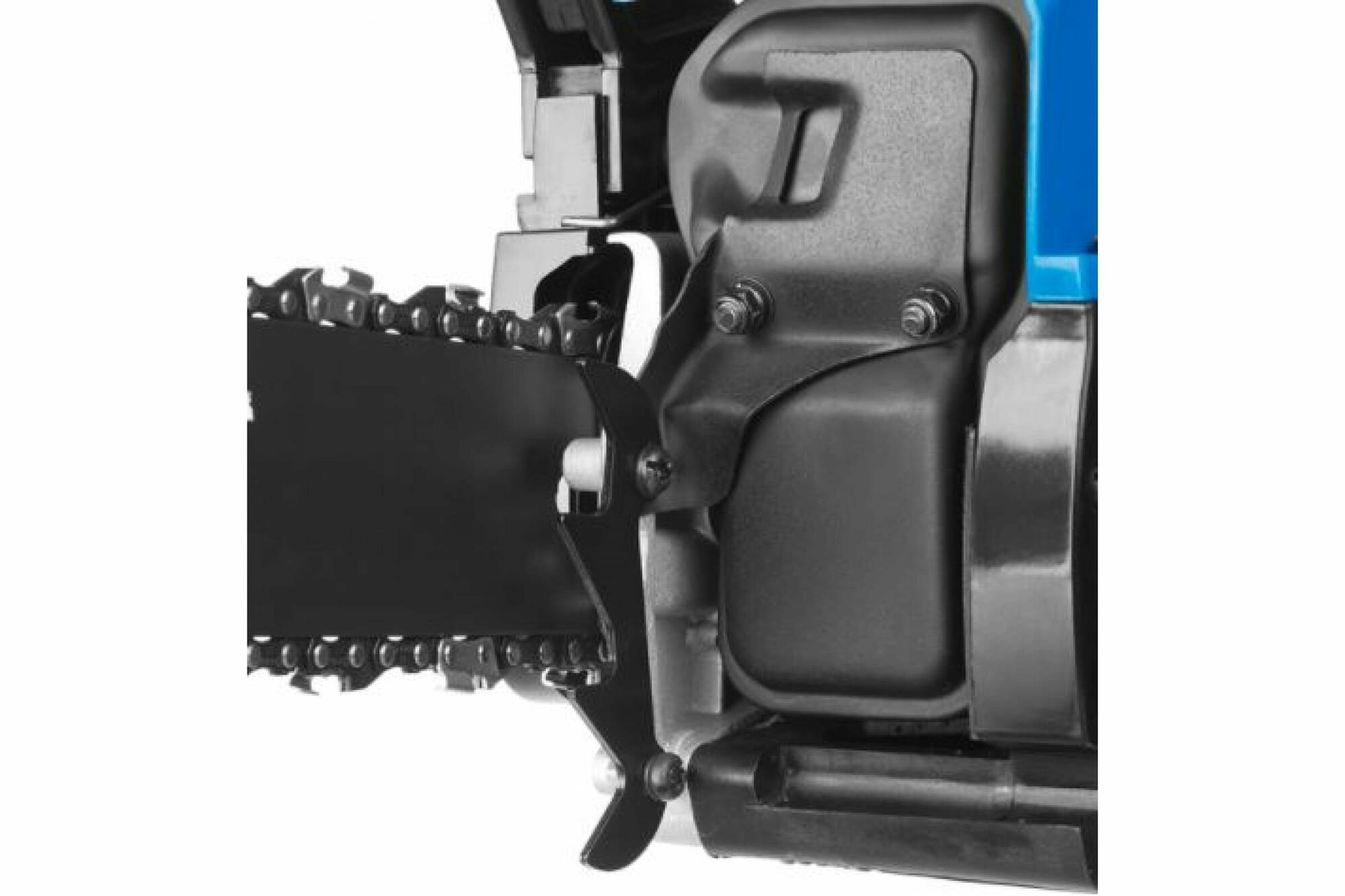 | Минусы: | Приложенным ключом неудобно регулировать натяжения цепи, Зуб на натяжном винте слишком маленький хлипкий и быстро износится.