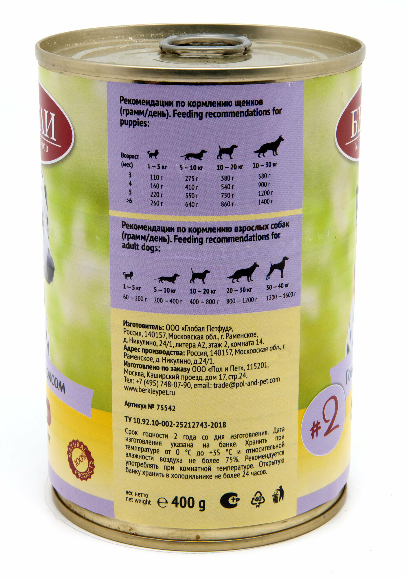 Консервы для собак Беркли №2 Говядина с рисом 400гр (6 штук) интересное: