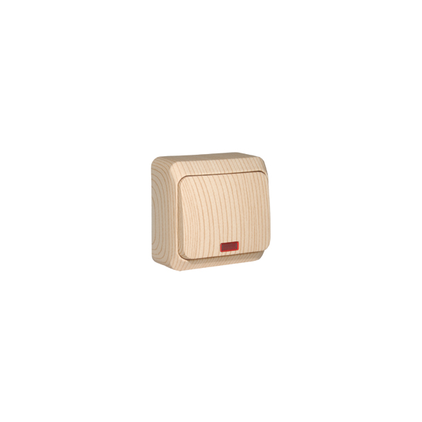 BA10-005D Выключатель 1-клавишный Systeme Electric Этюд с подсветкой, открытый монтаж, сосна