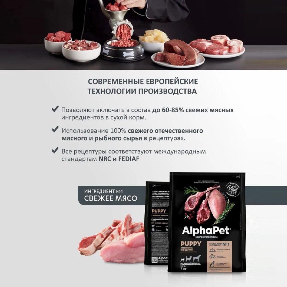 ALPHAPET SUPERPREMIUM PUPPY для щенков, беременных и кормящих собак маленьких пород с ягненком и индейкой (1,5 кг)