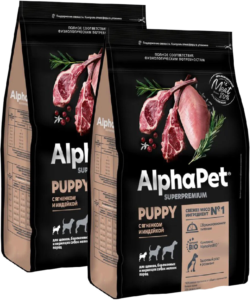 AlphaPet Superpremium 2шт по 1,5кг корм для щенков мелких пород с ягненком и индейкой