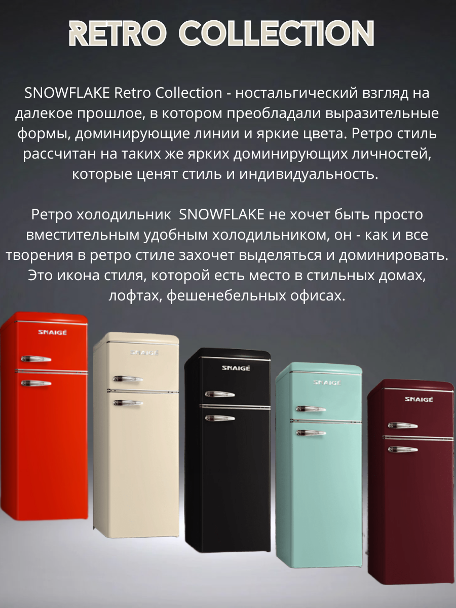 Ретро холодильник Snaige FR27SM-PRJ30E черный, высота 172.5 см и морозильной камерой сверху