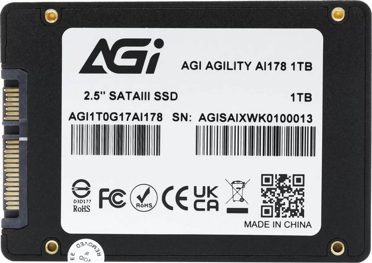 Твердотельный накопитель SSD 2.5 1 Tb AGI AI178 Read 535Mb/s Write 465Mb/s 3D NAND интересное: