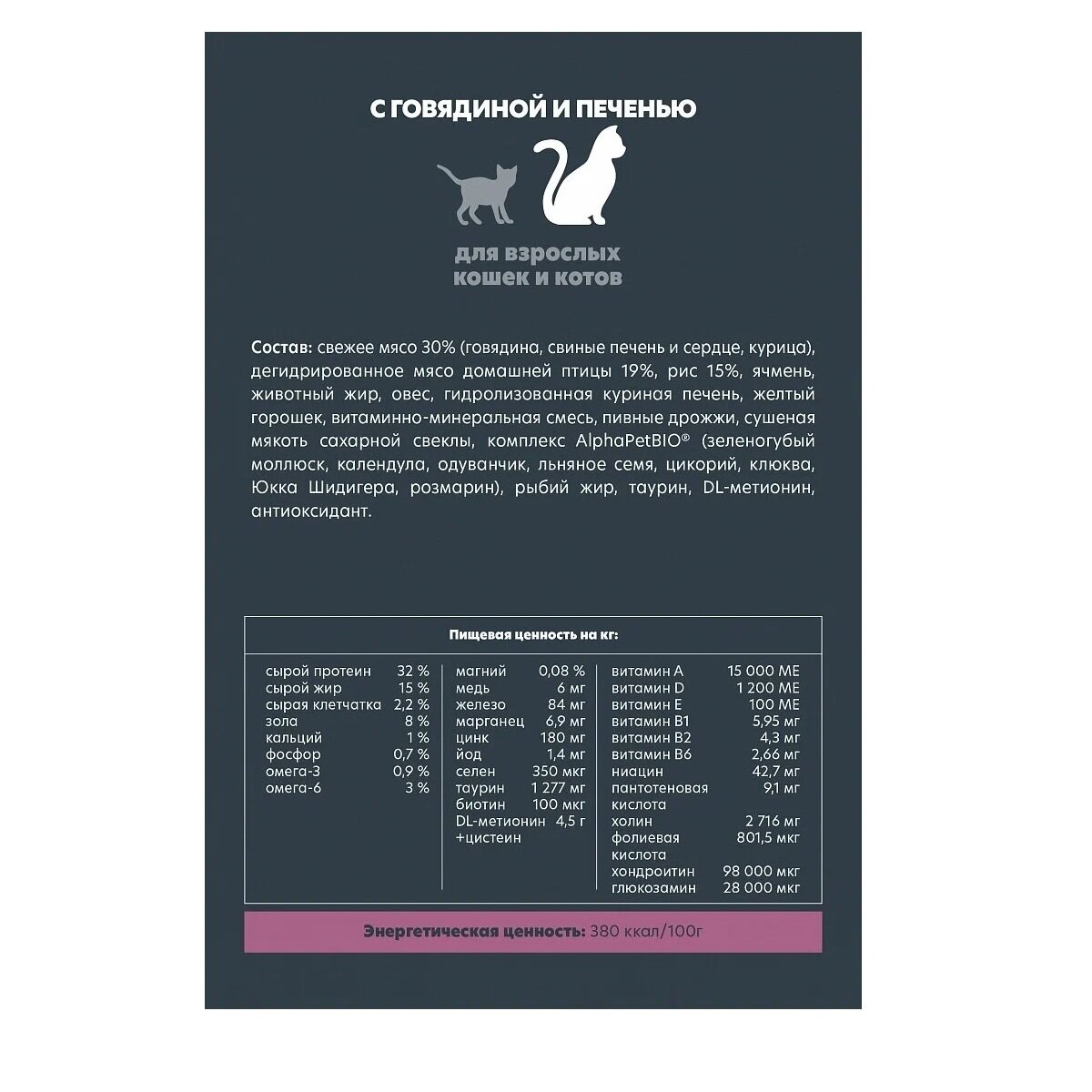 Купить Сухой корм для кошек AlphaPet Superpremium с говядиной и печенью, 1,5кг