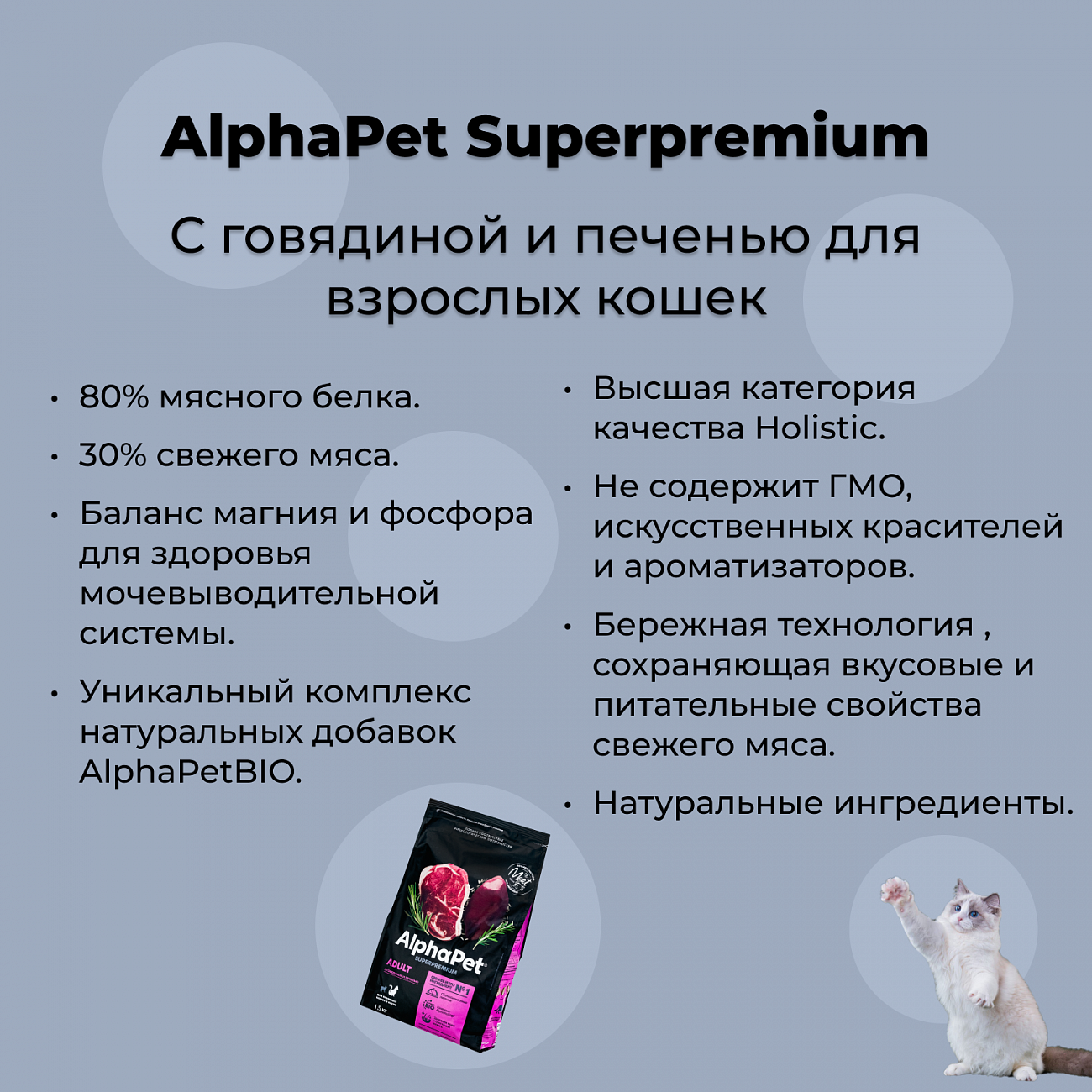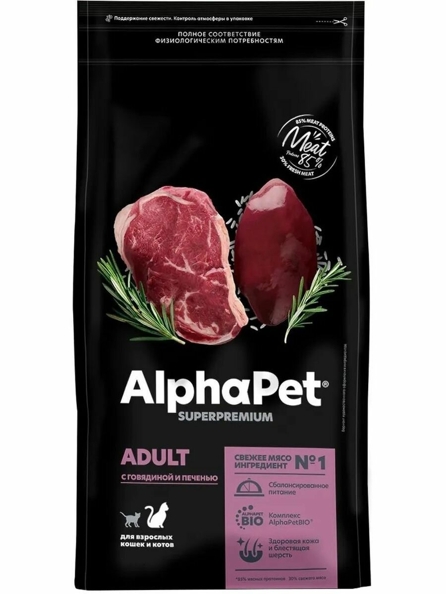 Сухой корм для кошек AlphaPet Superpremium с говядиной и печенью, 1,5кг