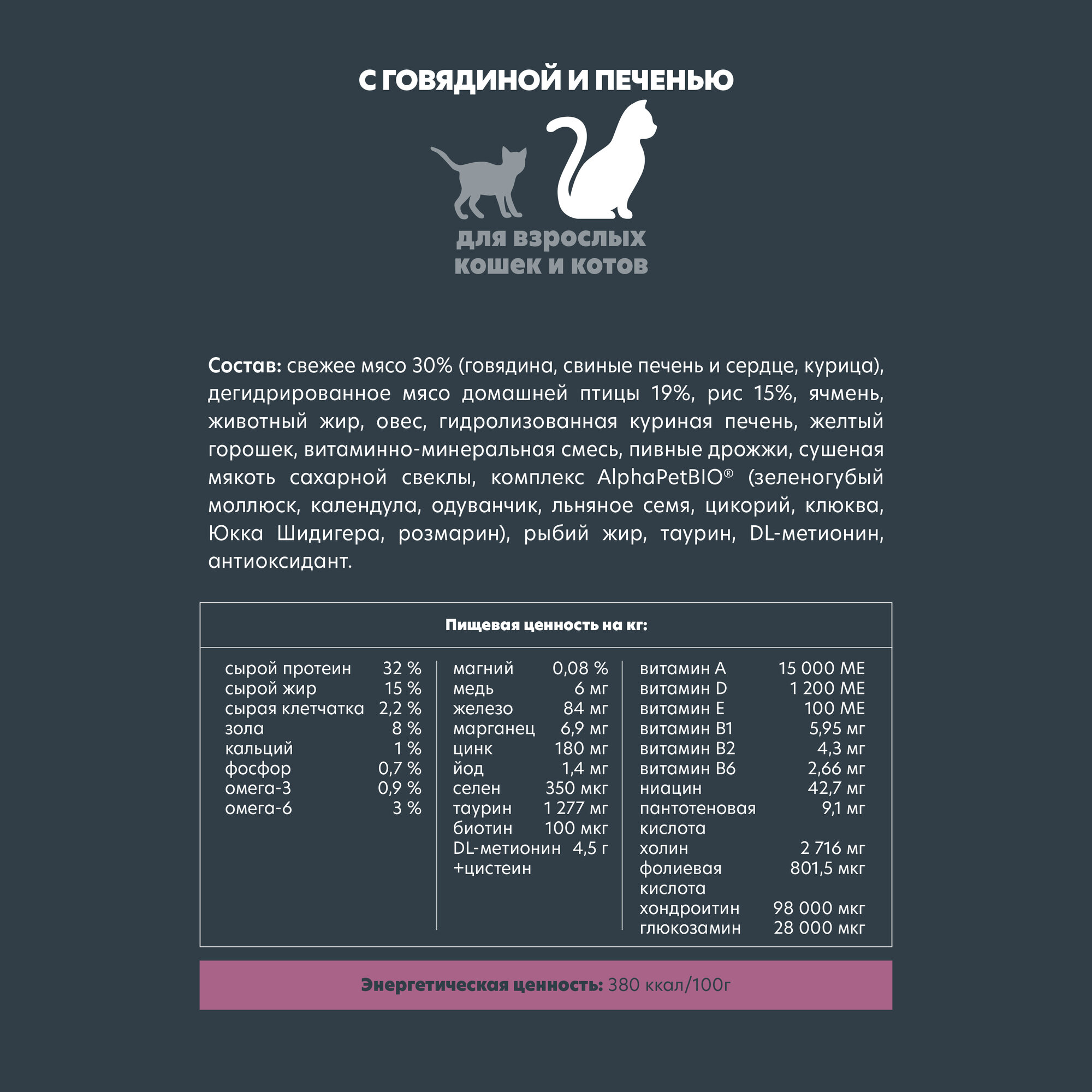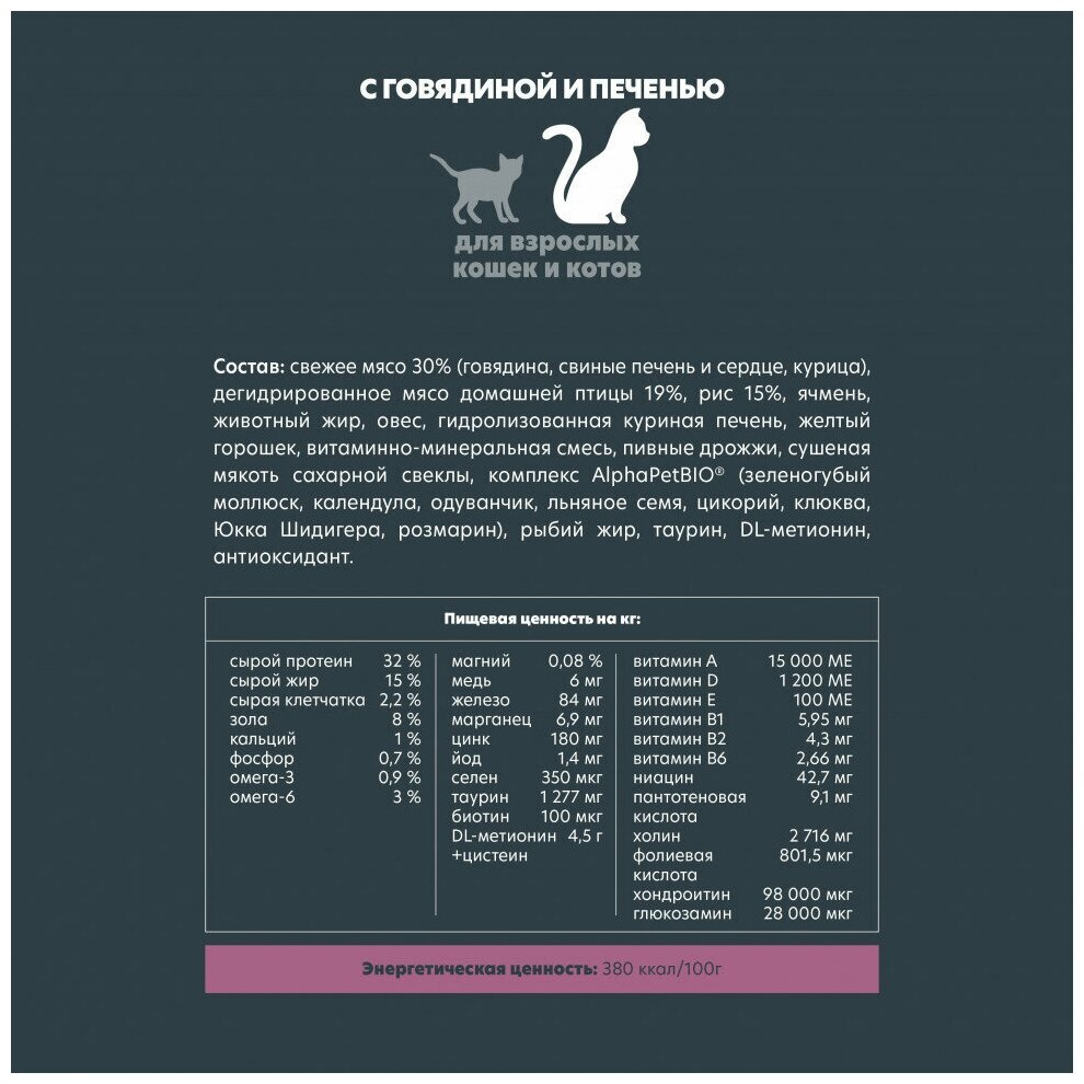 СохранитьСухой корм для взрослых кошек ALPHAPET Adult Superpremium с говядиной и печенью 3кг интересное: