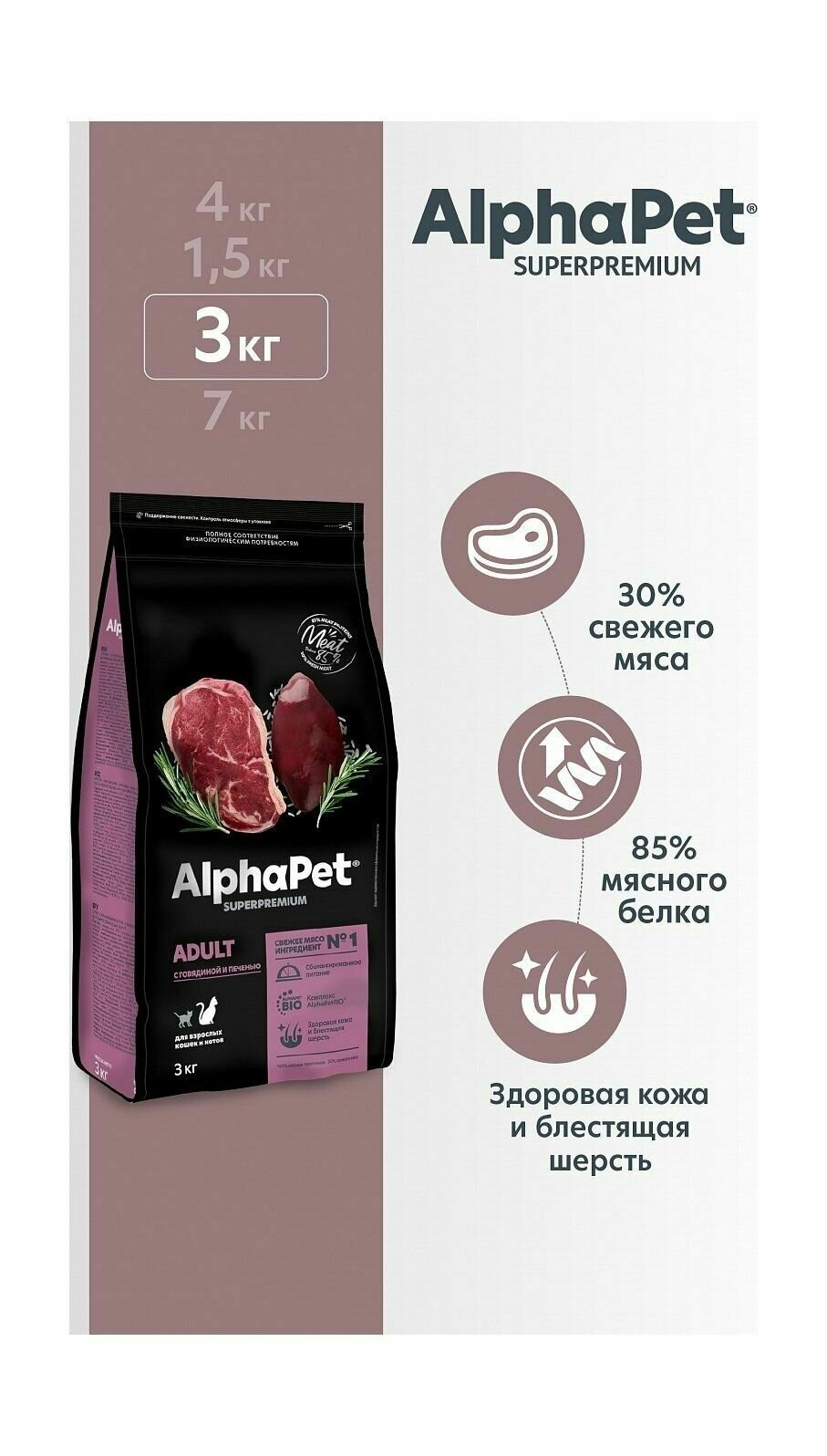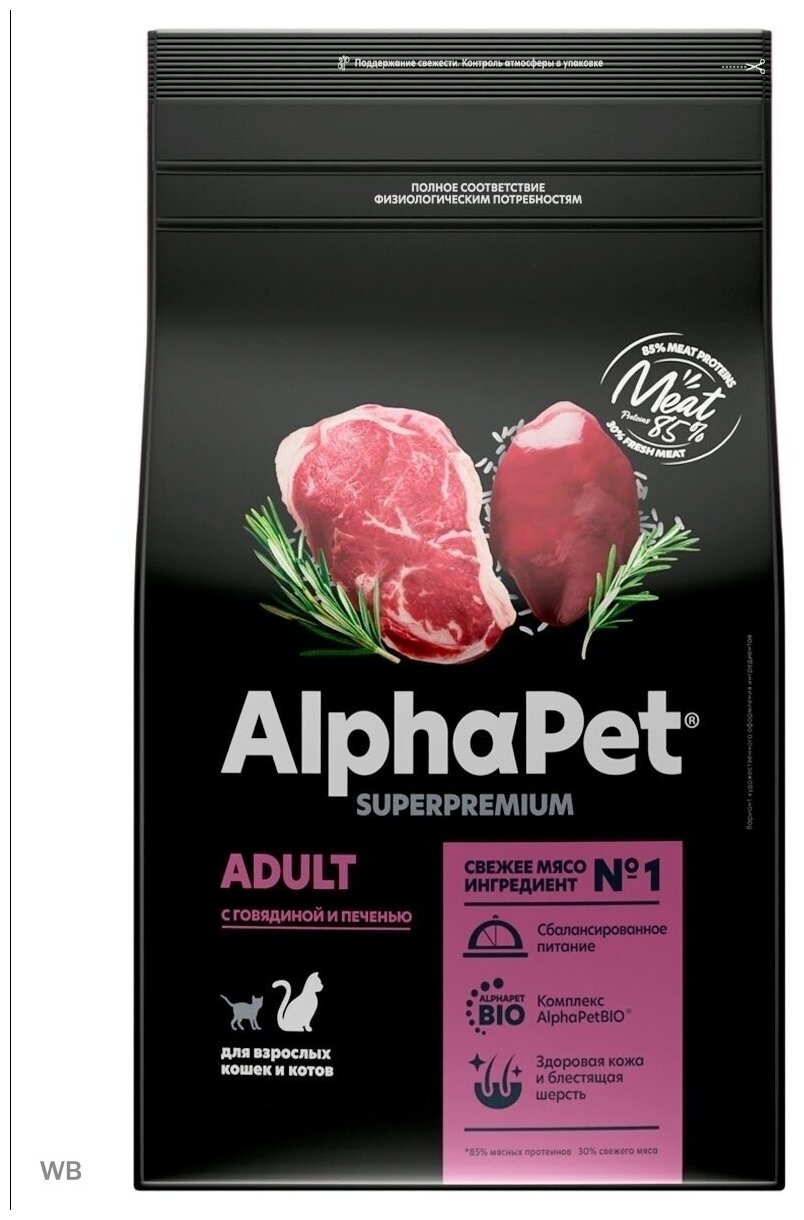 Купить Сухой корм для взрослых кошек ALPHAPET Adult Superpremium с говядиной и печенью 3кг