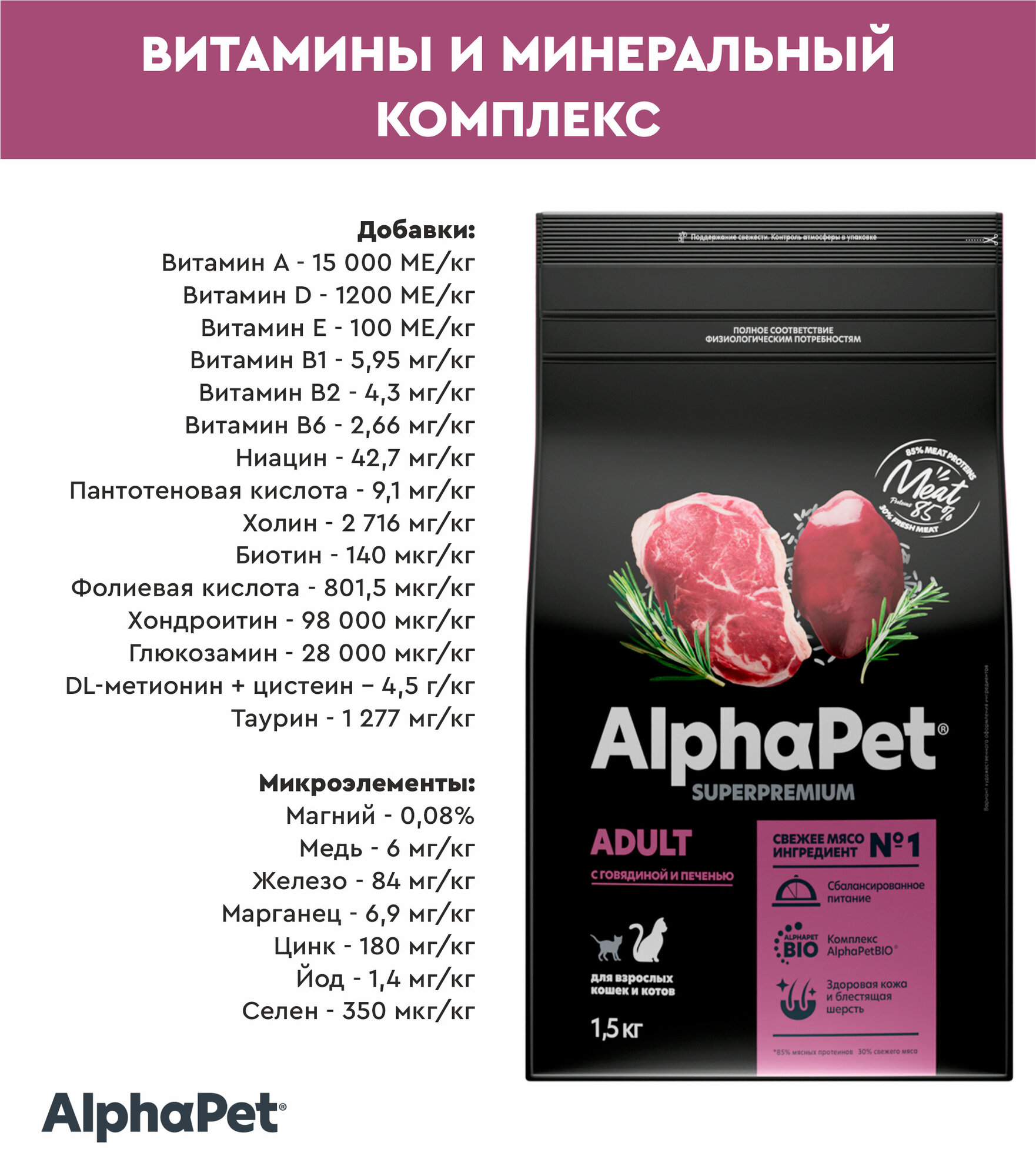 Сухой корм для кошек AlphaPet Superpremium с говядиной и печенью, 1,5кг