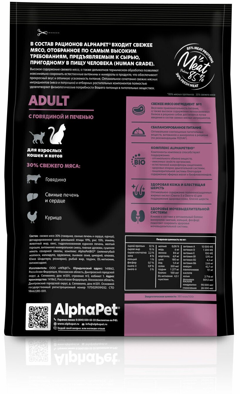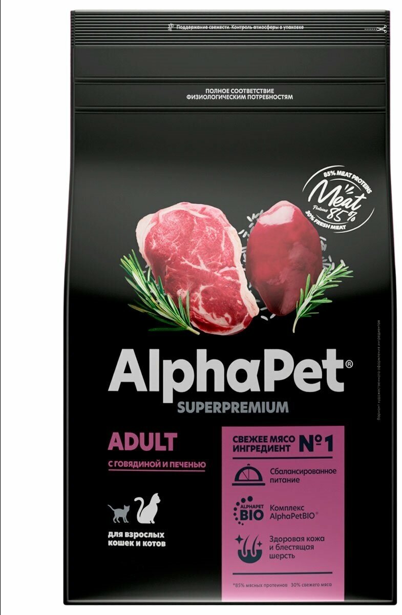 Сухой корм для кошек AlphaPet Superpremium с говядиной и печенью, 1,5кг