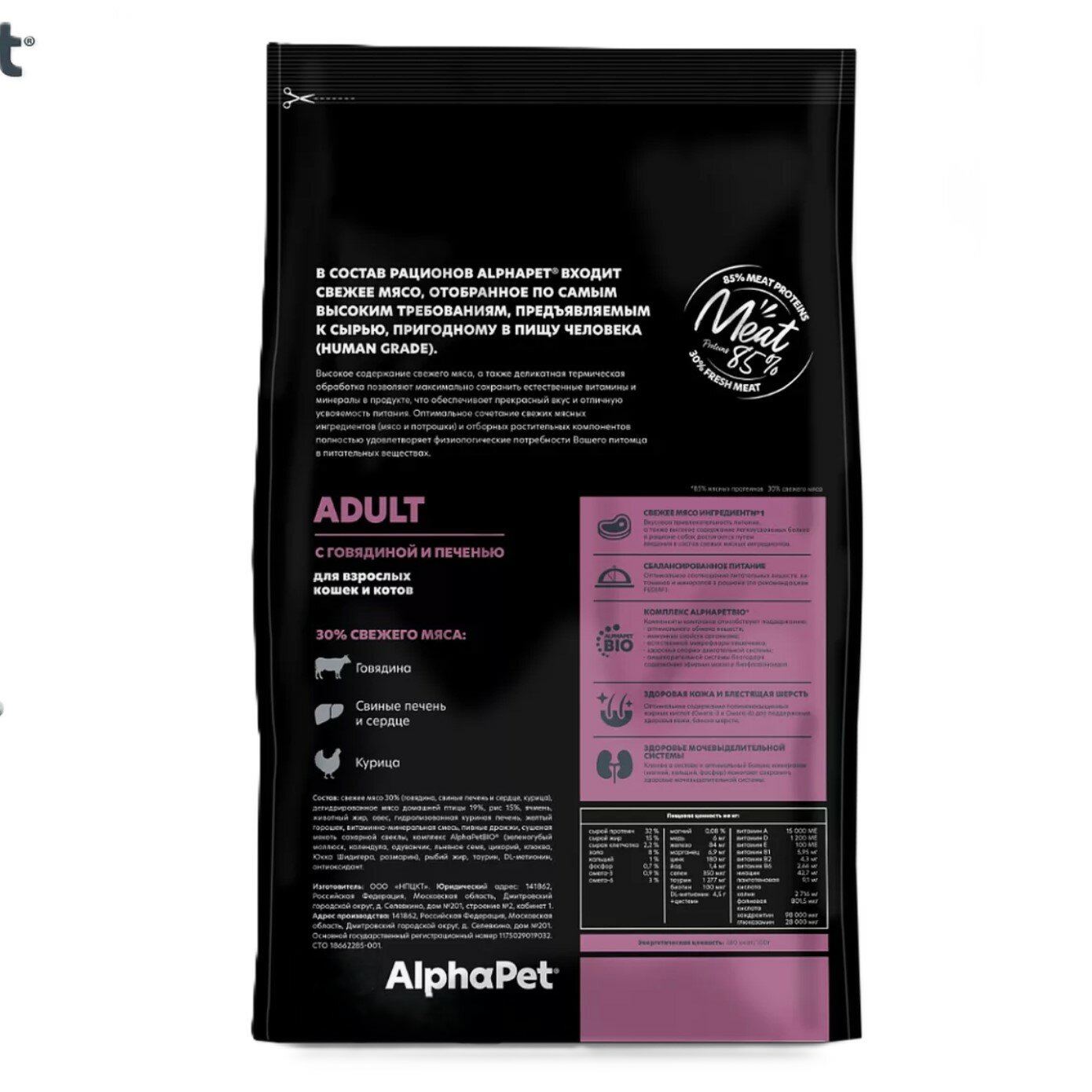 AlphaPet Superpremium (АльфаПет) корм для кошек с говядиной и печенью 7кг