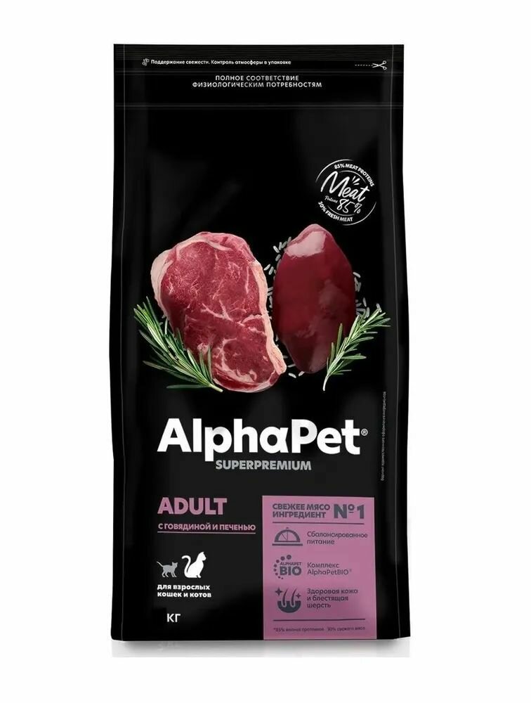 Сухой корм для кошек AlphaPet Superpremium с говядиной и печенью, 1,5кг