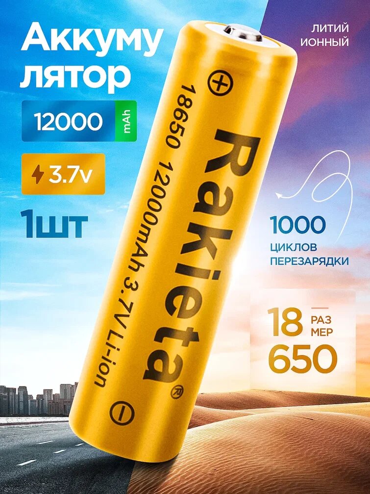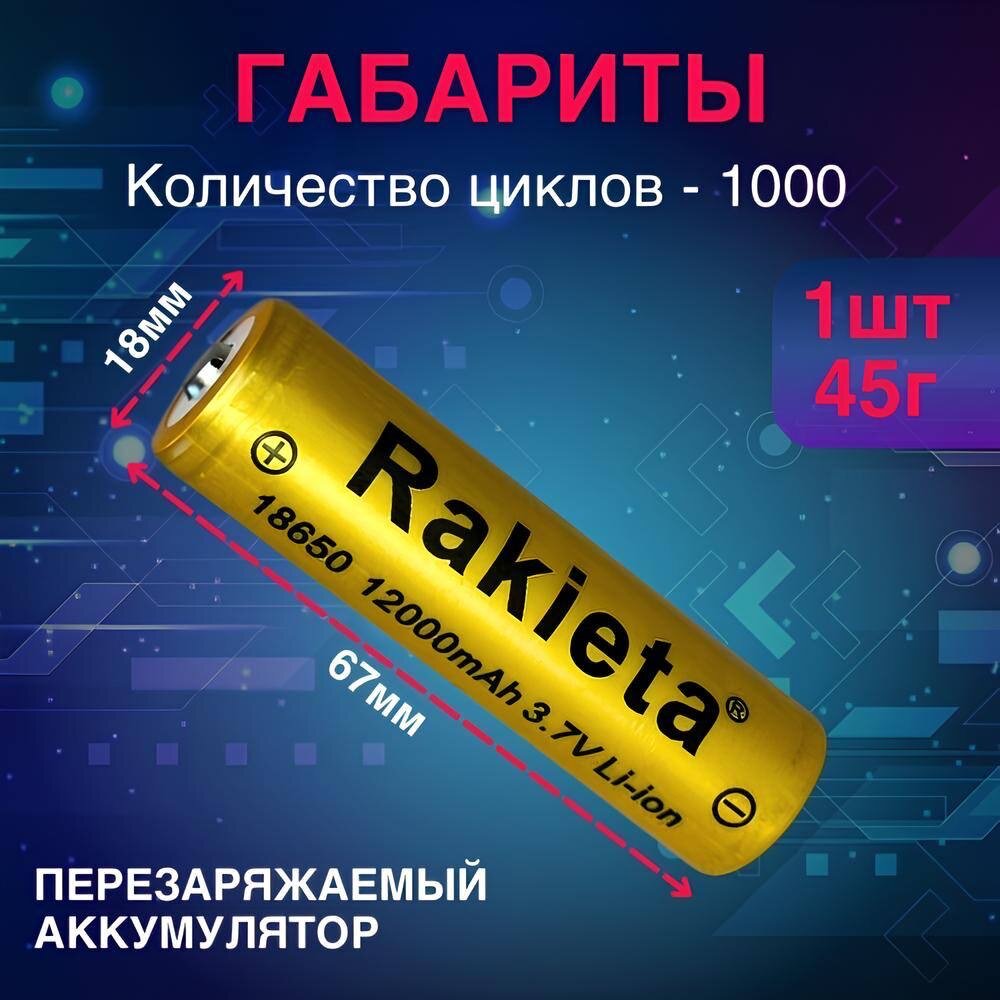 Батарейки аккумуляторные 18650 1 шт/ аккумулятор 18650 3.7V 12000mAh Li-ion Rakieta, 1 шт