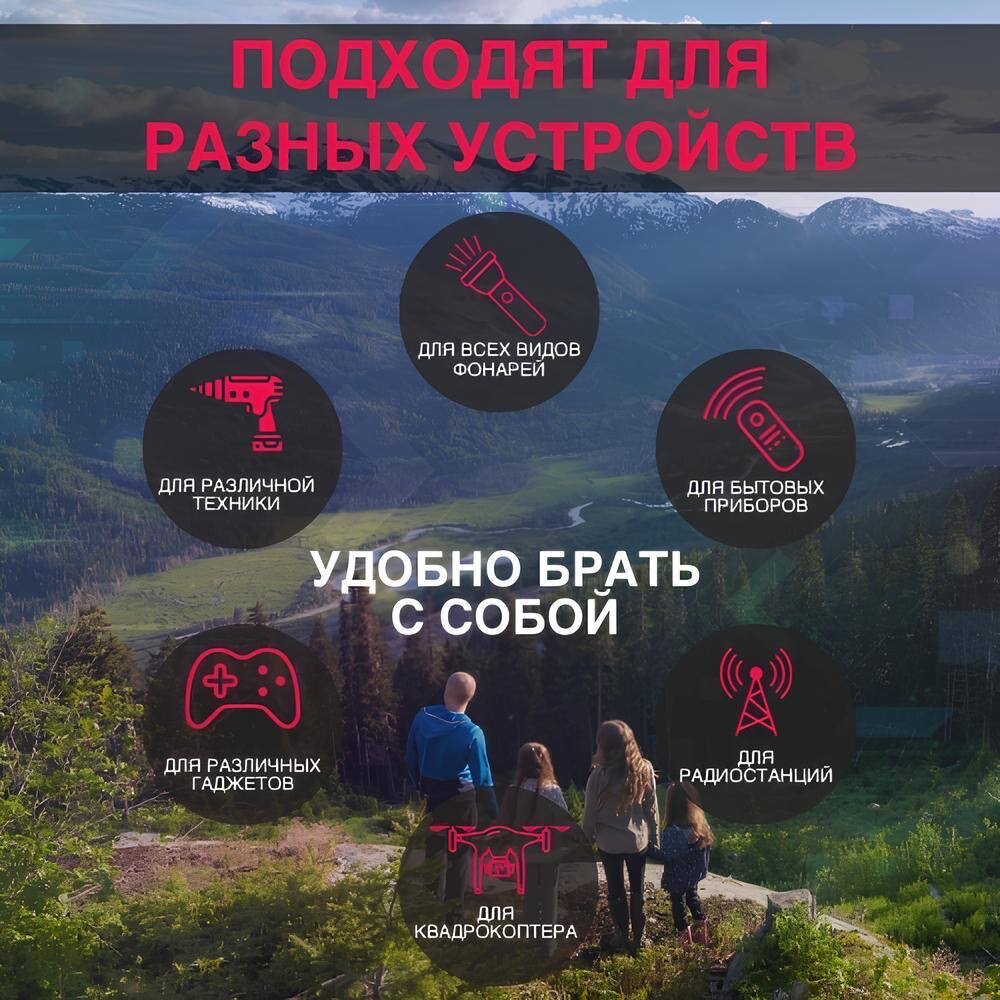 | Плюсы: | Хорошая ёмкость держат заря хорошо. В фонарик отличный вариант |