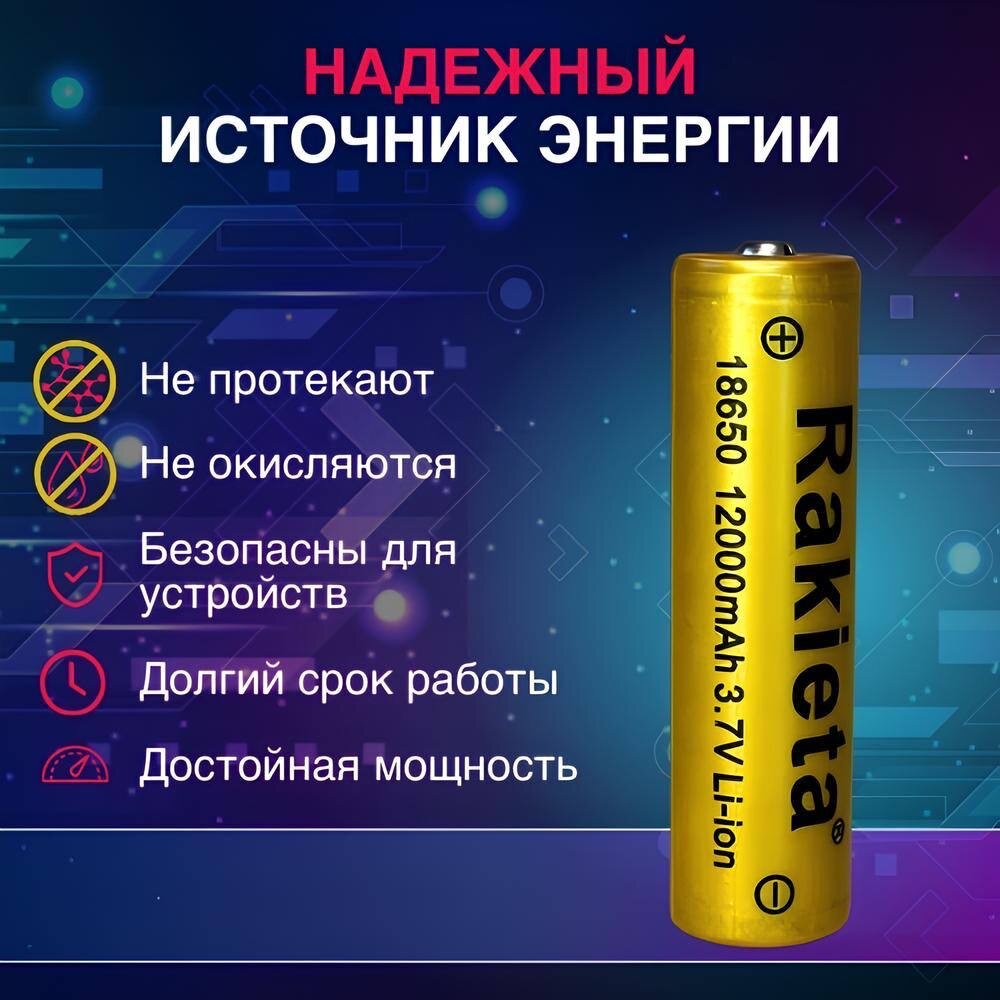 Батарейки аккумуляторные 18650 2 шт/ аккумулятор 18650 3.7V 12000mAh Li-ion Rakieta, 2 шт