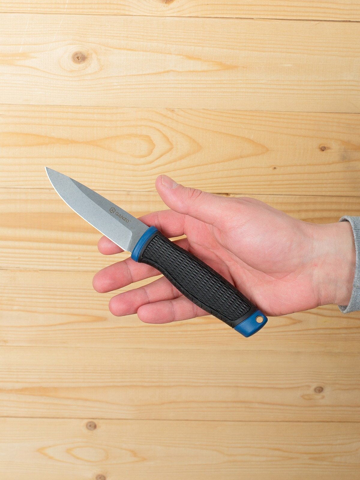 СохранитьНож фиксированный с ножнами туристический тактический походный для выживания и охоты GANZO G806 черный с синим интересное: