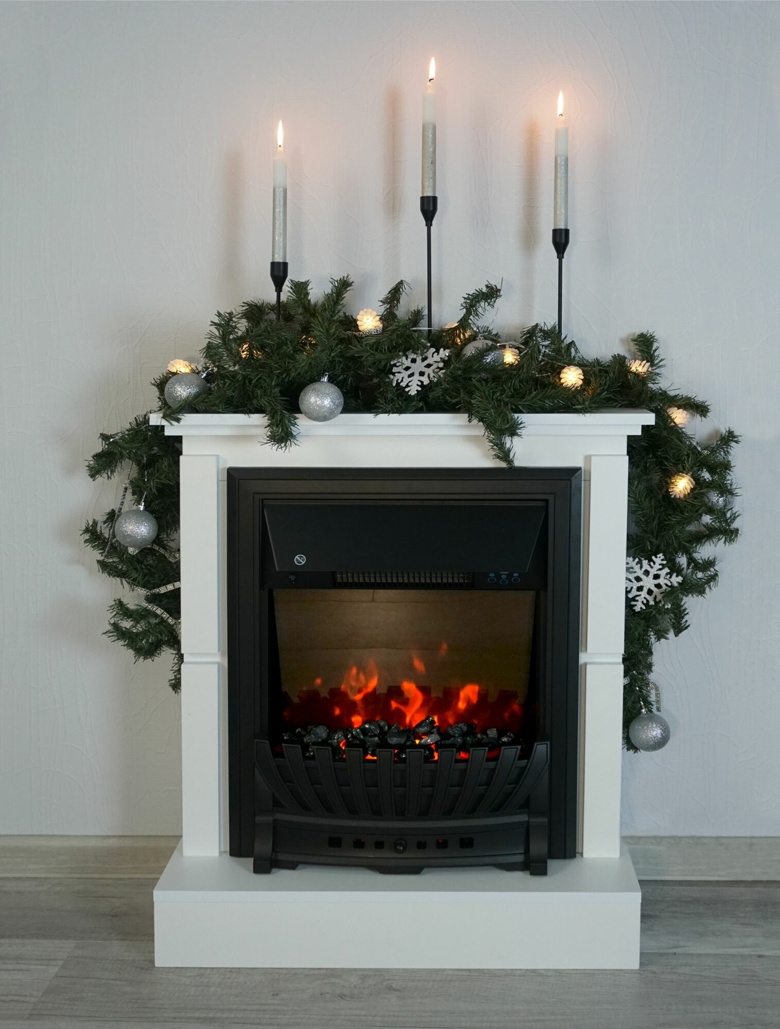 Электрический камин с порталом Vitamin белого цвета и эффектом живого огня