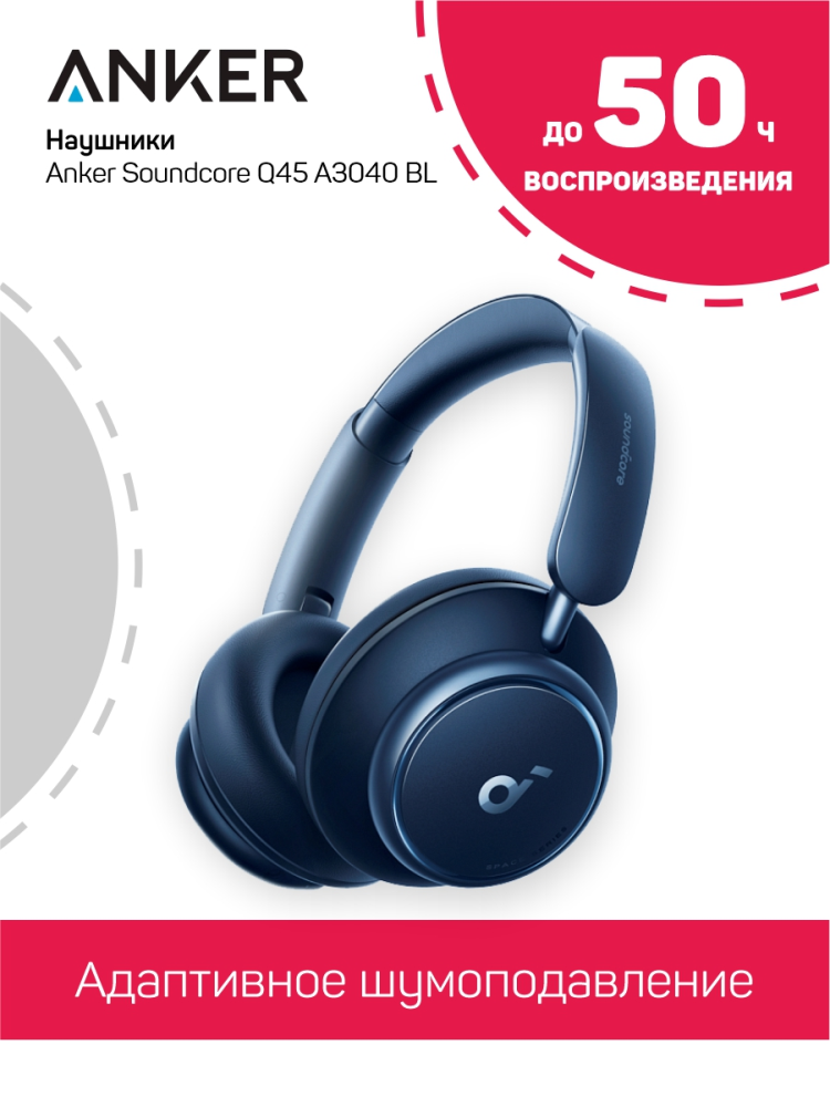 Ниже Вы можете прочитать отзывы на Беспроводные наушники ANKER Soundcore Space Q45, USB Type-C, синий, ознакомится с подробными характеристиками, посмотреть интересные обзоры и фотографии на Беспроводные наушники ANKER Soundcore Space Q45, USB Type-C, синий.