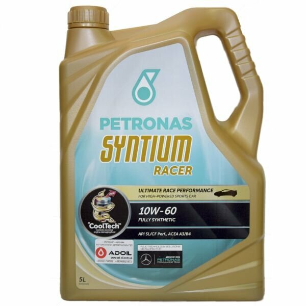 Купить Моторное масло PETRONAS RACER 10W-60 Синтетическое 5л API SN/CF, ACEA A3/B4, FCA 955535-H3, 70000M12EU