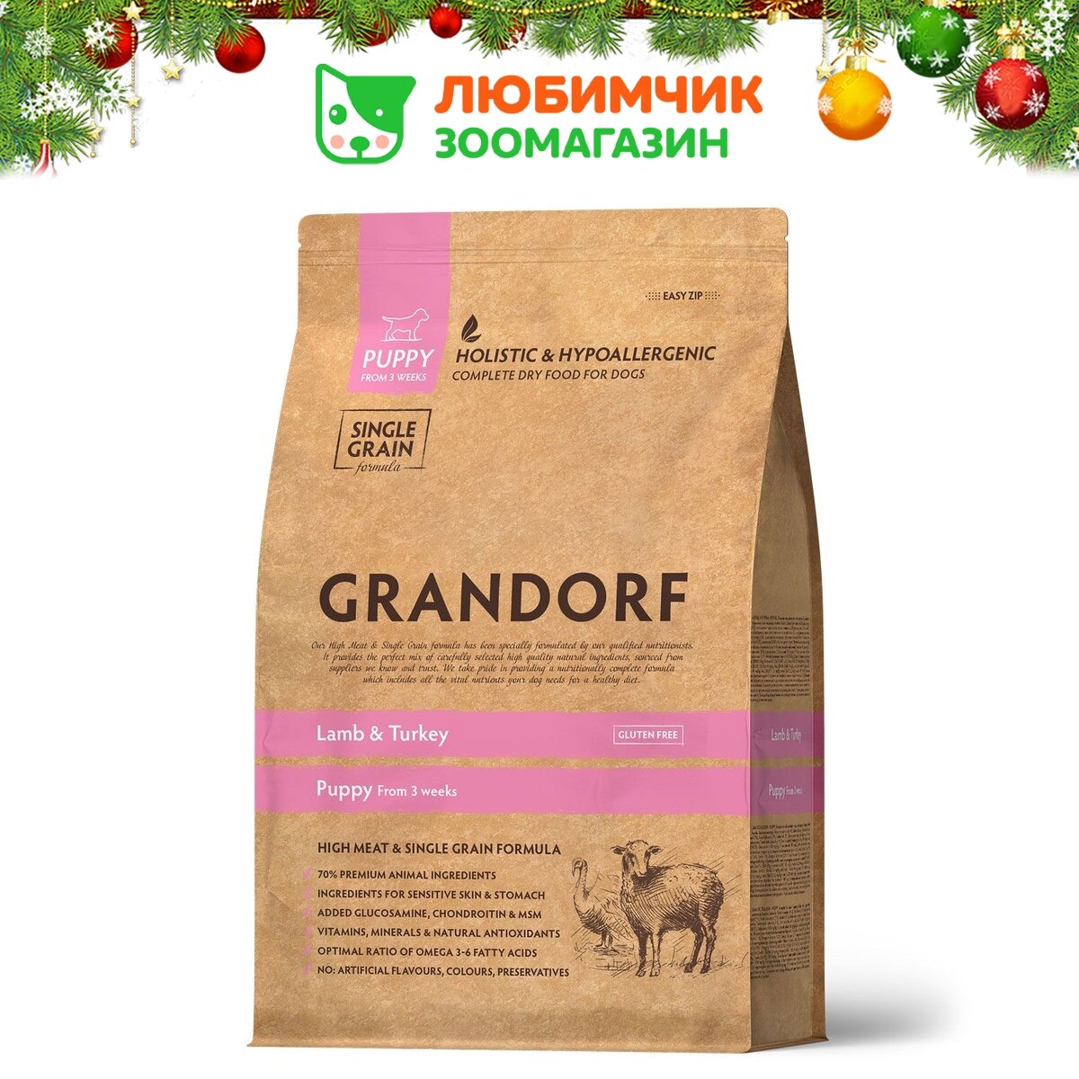 GRANDORF Ягнёнок с индейкой 10кг (Puppy). Для щенков, беременных и кормящих. Низкозерновой холистик, гипоаллергенный