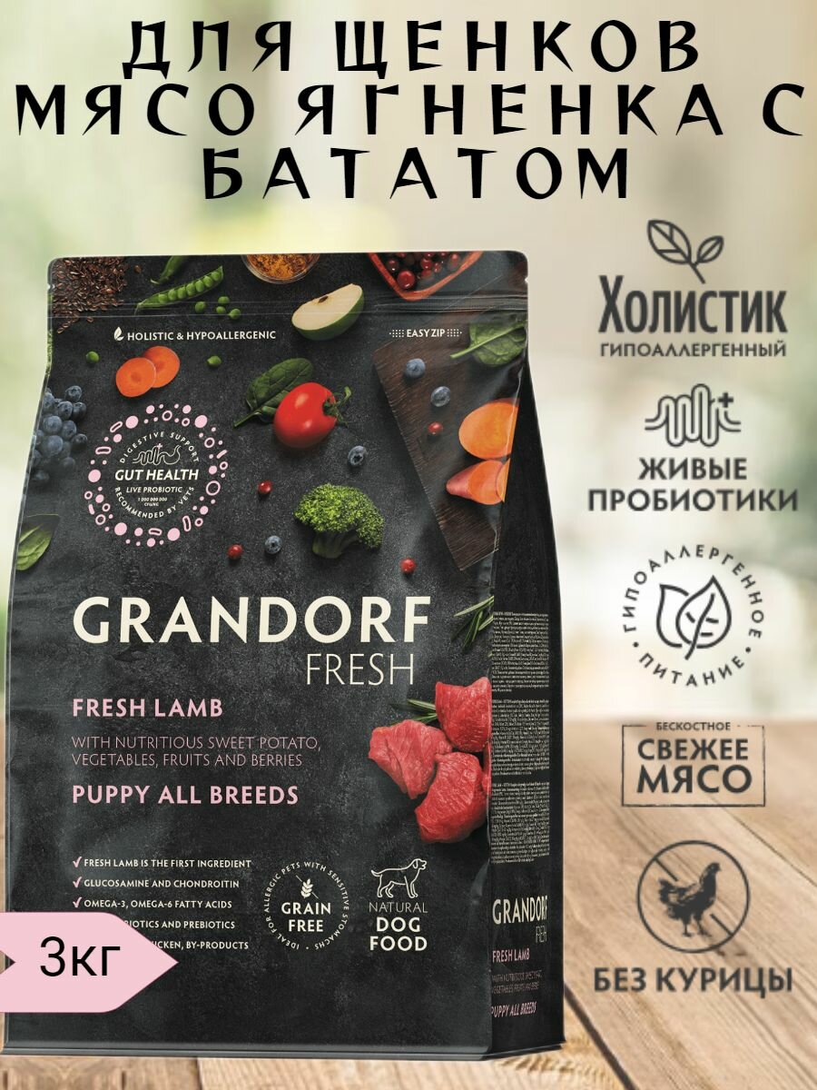 GRANDORF Fresh Dog PUPPY Lamb&Sweet Potato (Свежее мясо ягненка с бататом для щенков) (3 кг)