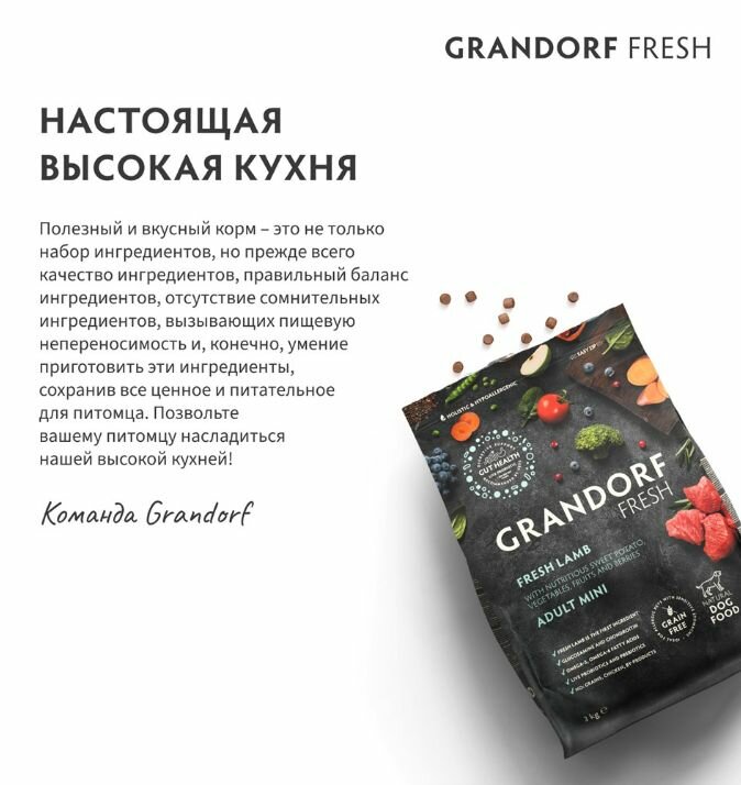 Ниже Вы можете прочитать отзывы на Корм сухой Grandorf Fresh , беззерновой с живыми пробиотиками, свежее мясо ягненка с бататом для щенков, 3 кг, ознакомится с подробными характеристиками, посмотреть интересные обзоры и фотографии на Корм сухой Grandorf Fresh , беззерновой с живыми пробиотиками, свежее мясо ягненка с бататом для щенков, 3 кг.