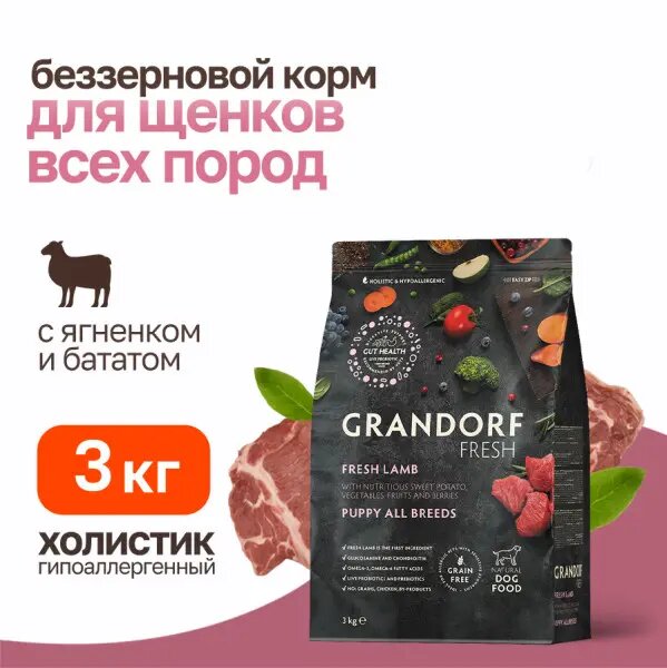 GRANDORF Fresh Dog PUPPY Lamb&Sweet Potato (Свежее мясо ягненка с бататом для щенков) (3 кг)
