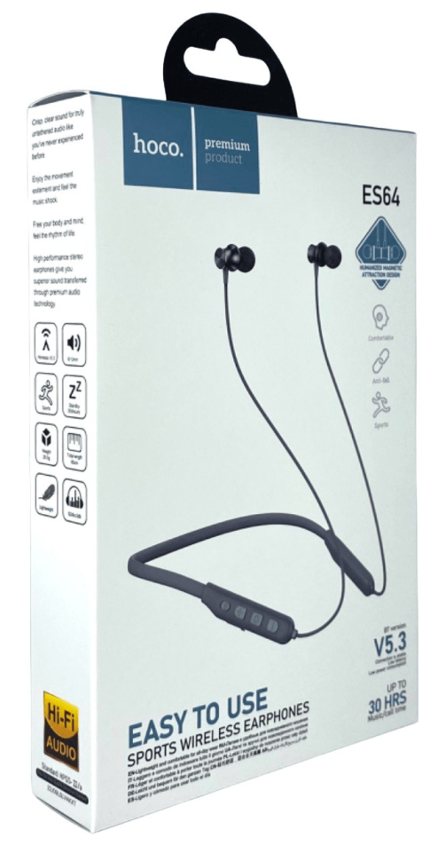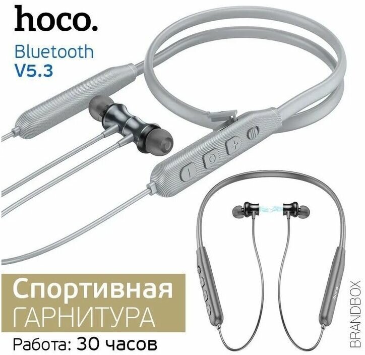 Беспроводные Bluetooth-наушники вакуумные с шейным силиконовым ободом Hoco ES64 Sport Wireless, 30 часов работы, серые
