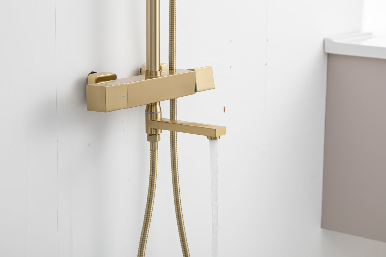 Душевая стойка для ванны FRAP F24007-3 с термостатом, золотой сатин, латунь
