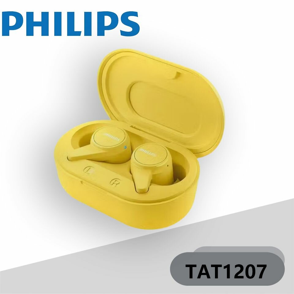 Купить Наушники беспроводные PHILIPS True Wireless Bluetooth Headset TAT1207 желтый, 2.0, внутриканальные, 20 Гц - 20000 Гц, 16, Bluetooth, 5.2, TWS