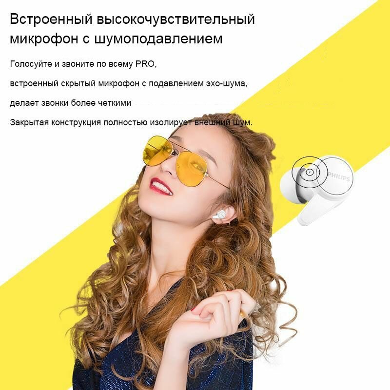 СохранитьНаушники беспроводные PHILIPS True Wireless Bluetooth Headset TAT1207 желтый, 2.0, внутриканальные, 20 Гц - 20000 Гц, 16, Bluetooth, 5.2, TWS интересное: