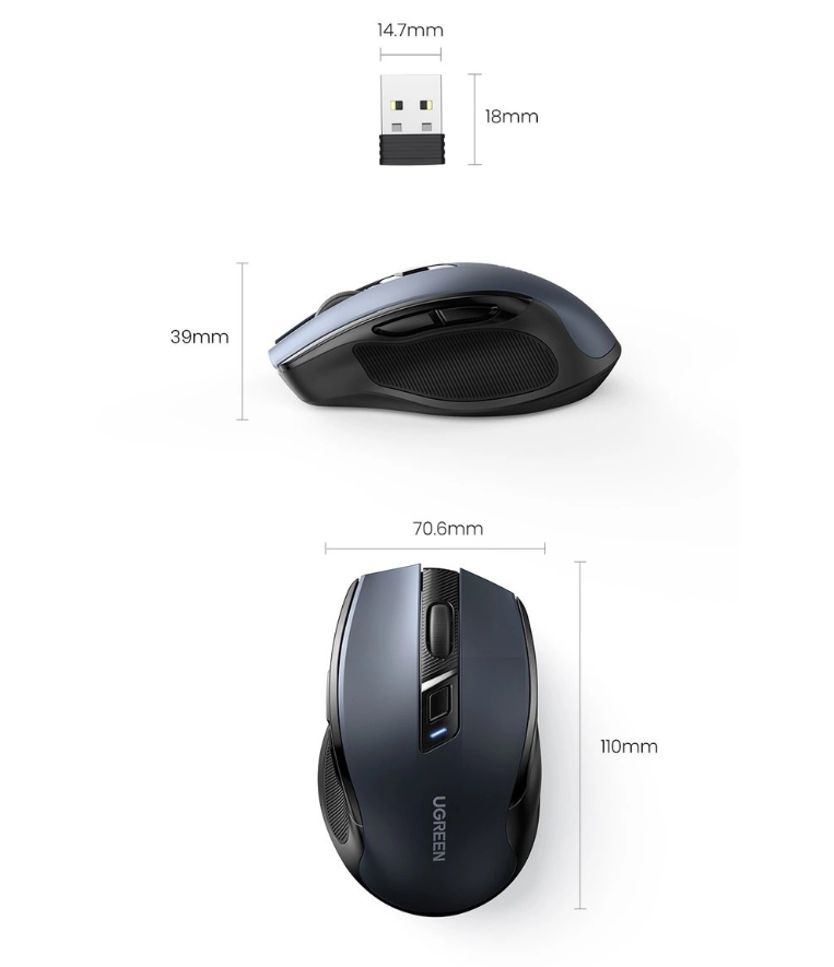 Беспроводная компьютерная мышь Ugreen с подключением через USB-ресивер или Bluetooth 5.0 для игр и работы